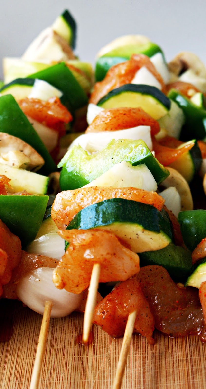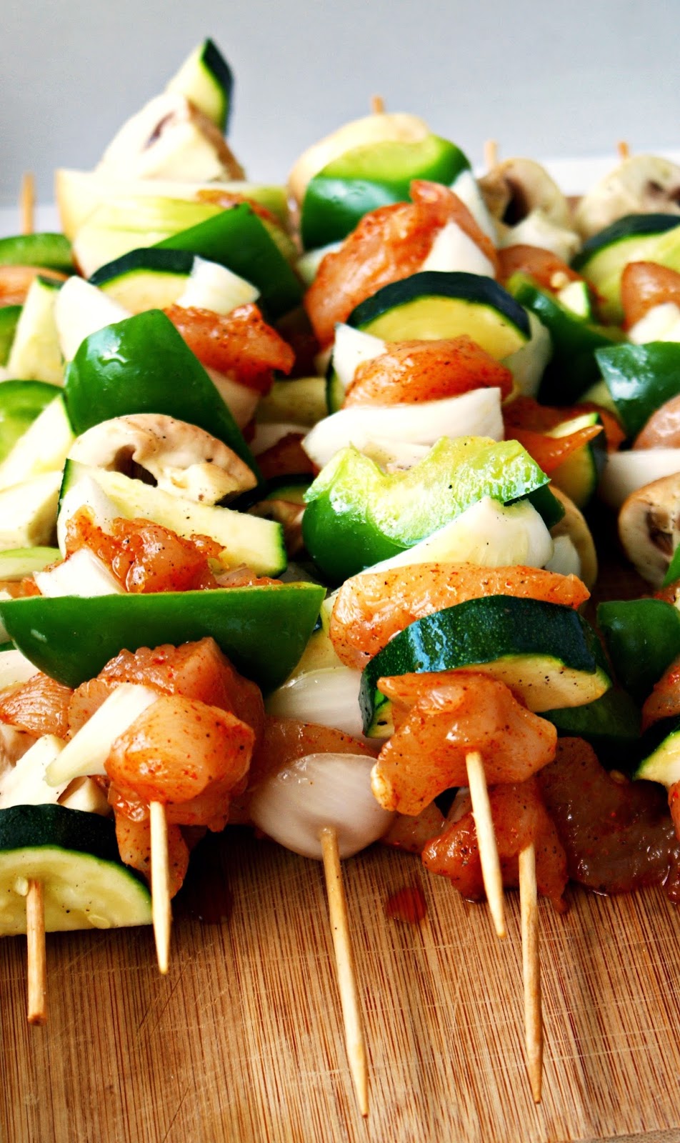 Nakłuwać na zmianę warzywa z kurczakiem na szpikulce i hej na grilla!! :)