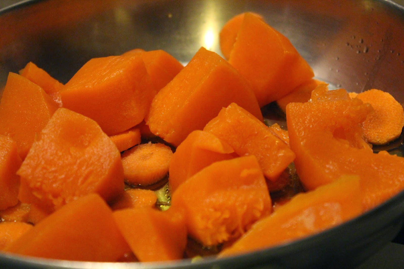 Tagliare a pezzi la zucca privandola della buccia. Tagliare a rondelle le carote (precedentemente lavate e sbucciate)