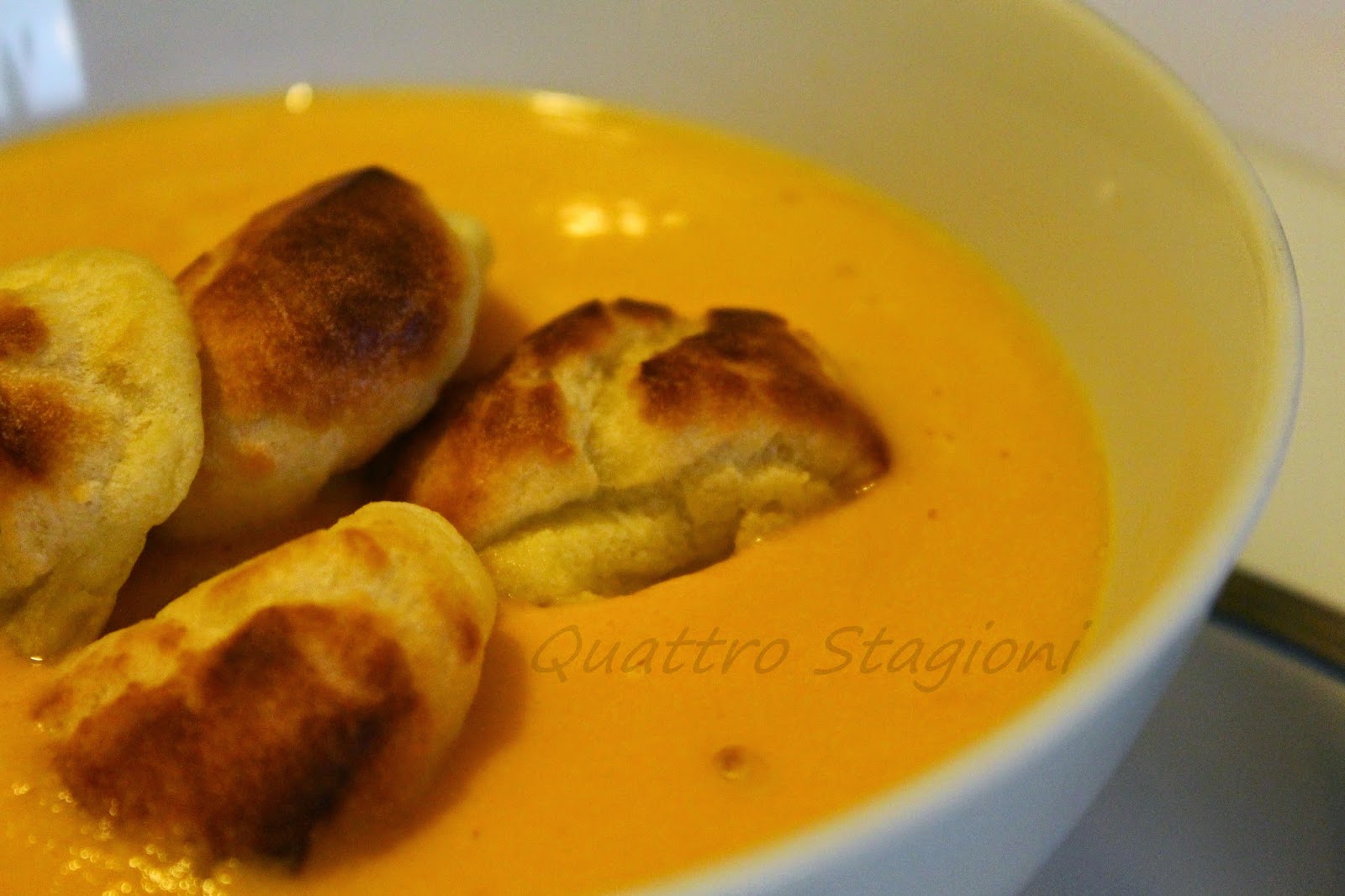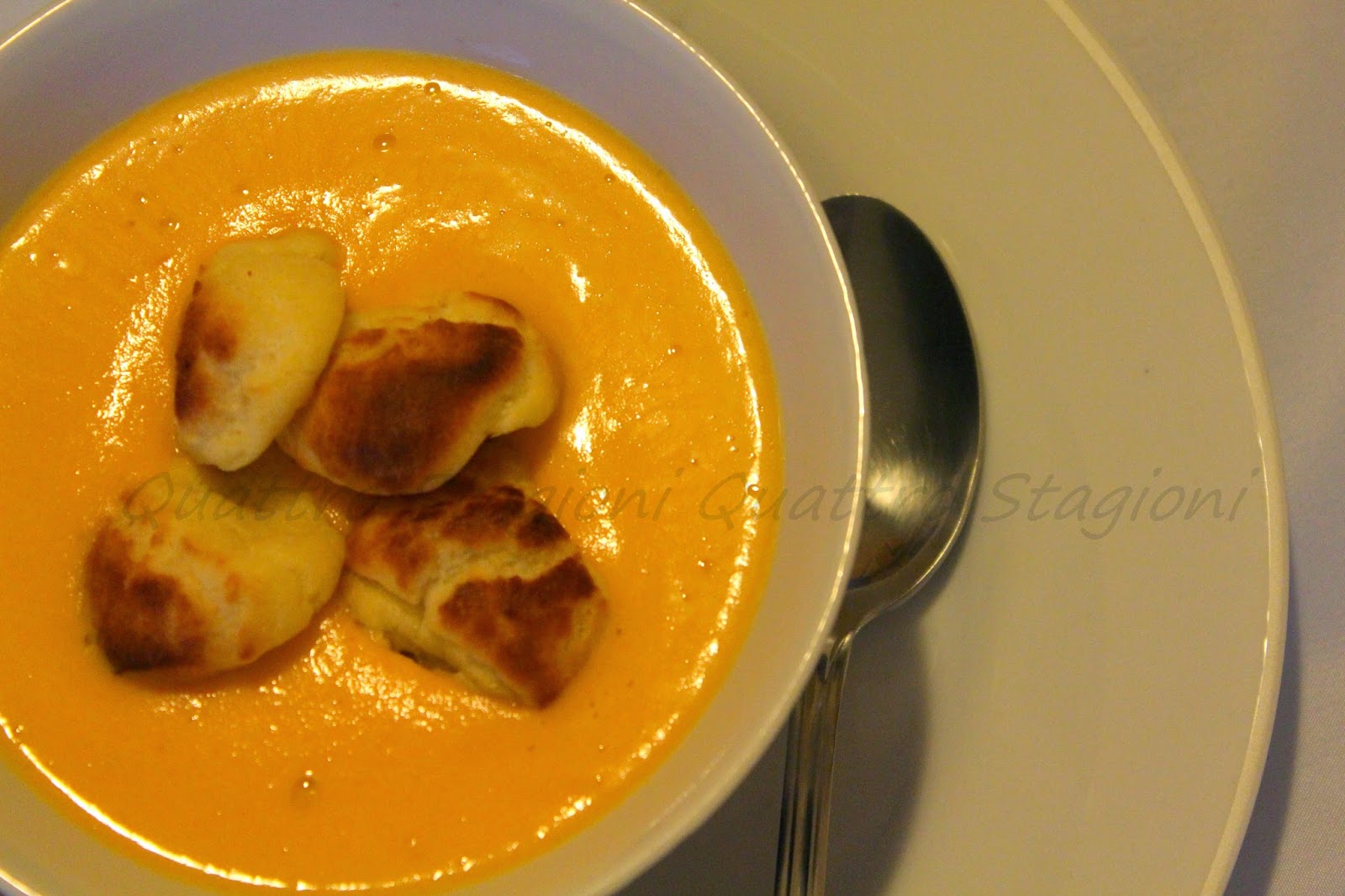 Una calda zuppa di zucca con un pizzico di peperoncino piccante,