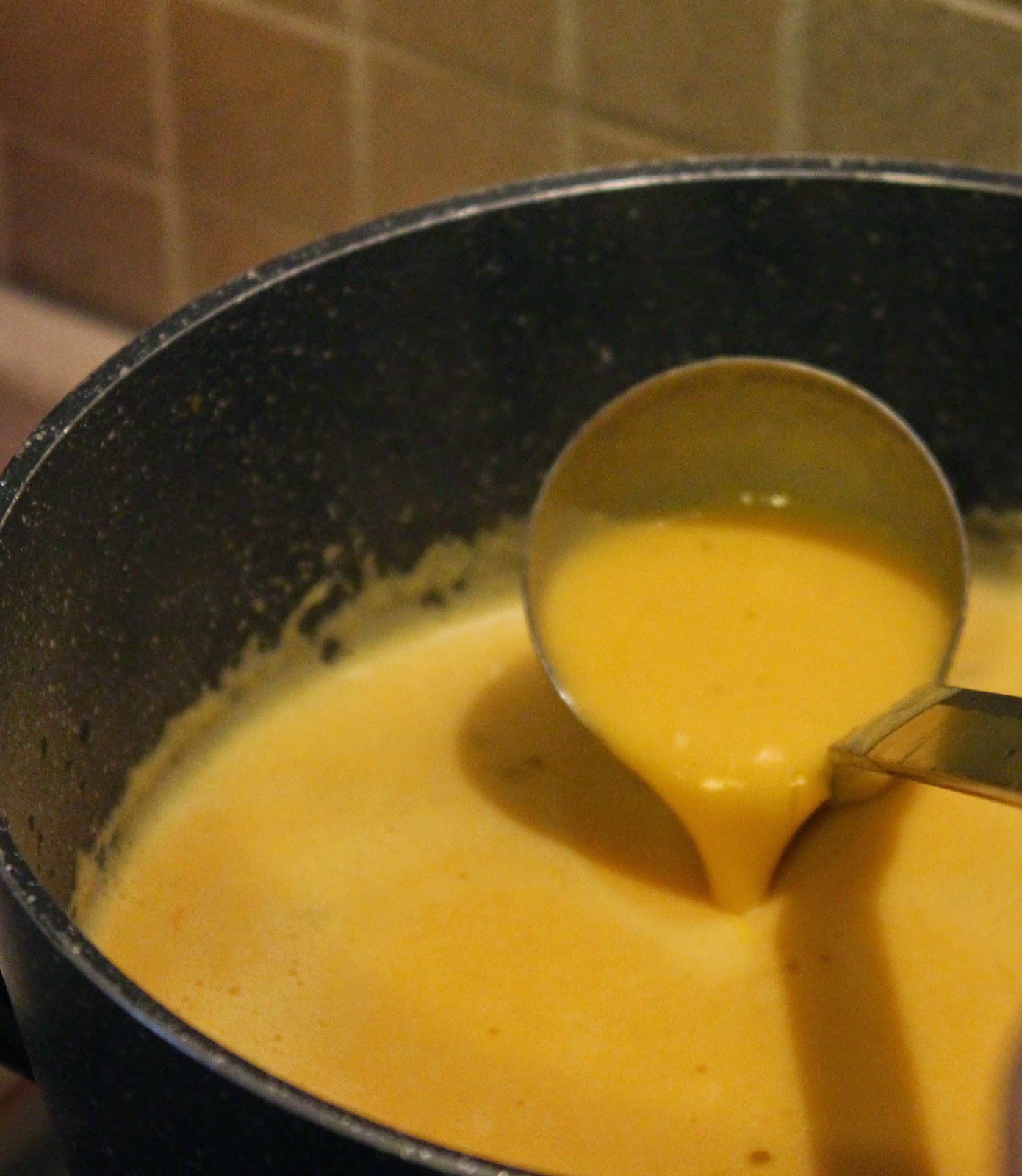 Versare la crema di zucca ( ancora calda) nella pentola e aggiungere il formaggino, amalgamare bene.