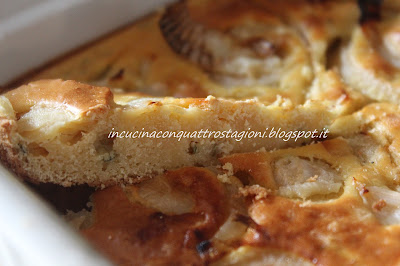 Versare l'impasto nelle forme, ( altezza dell'impasto di pochi millimetri) adagiare sopra le rondelle di cipolla. Pepare.