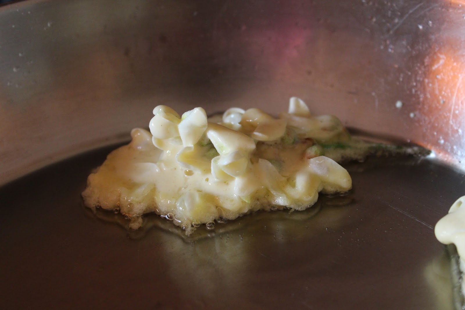 Smażymy kwiaty na rozgrzanym oleju słonecznikowym (małej ilości).