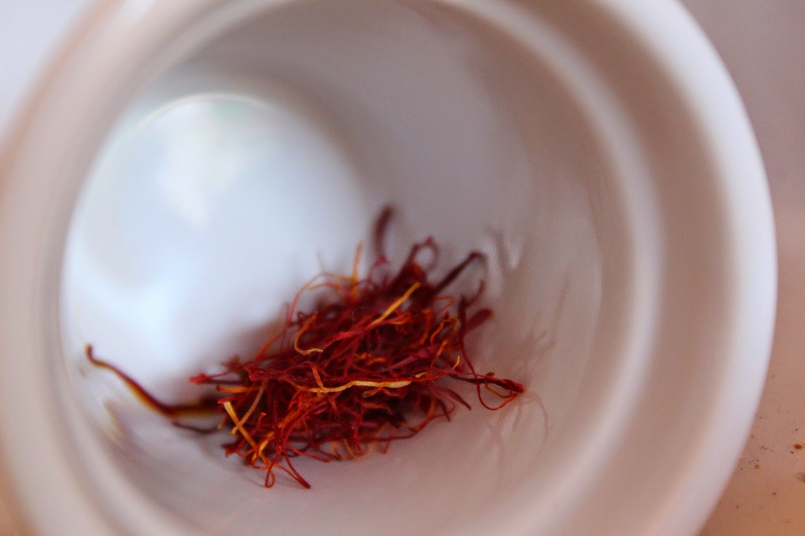 Do przygotowania tego ryżu użyłam szafranowych słupków. Słupki i znamiona szafranowe pochodzą z fioletowych kwiatów "Crocus sativus ", zbiór których odbywa się wcześnie rano, gdy kwiaty zaczynają się otwierać. Każdy kwiat ma tylko trzy słupki. Potrzebne są 40 000 znamion i słupków do wyprodukowania 1 kg szafranu, więc uważajcie na zakup zbyt tanich produktów. Szafran czysty jest drogi. najlepiej kupować go w słupkach, a nie w proszku. Jakość szafranu w obrocie handlowym określa norma ISO-3632.