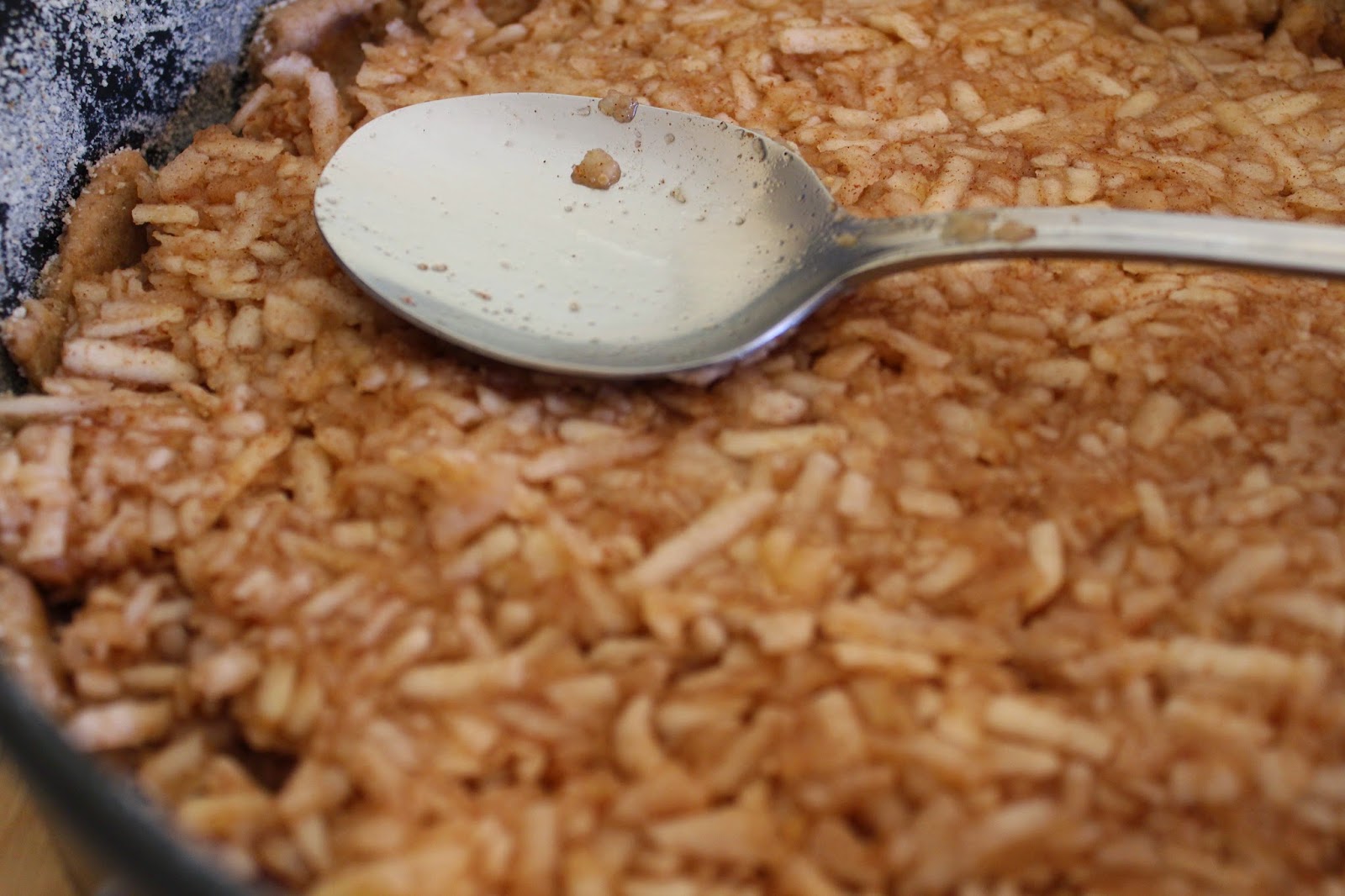 Tritiamo le mele, amalgamiamole con tutti gli ingredienti per il ripieno.