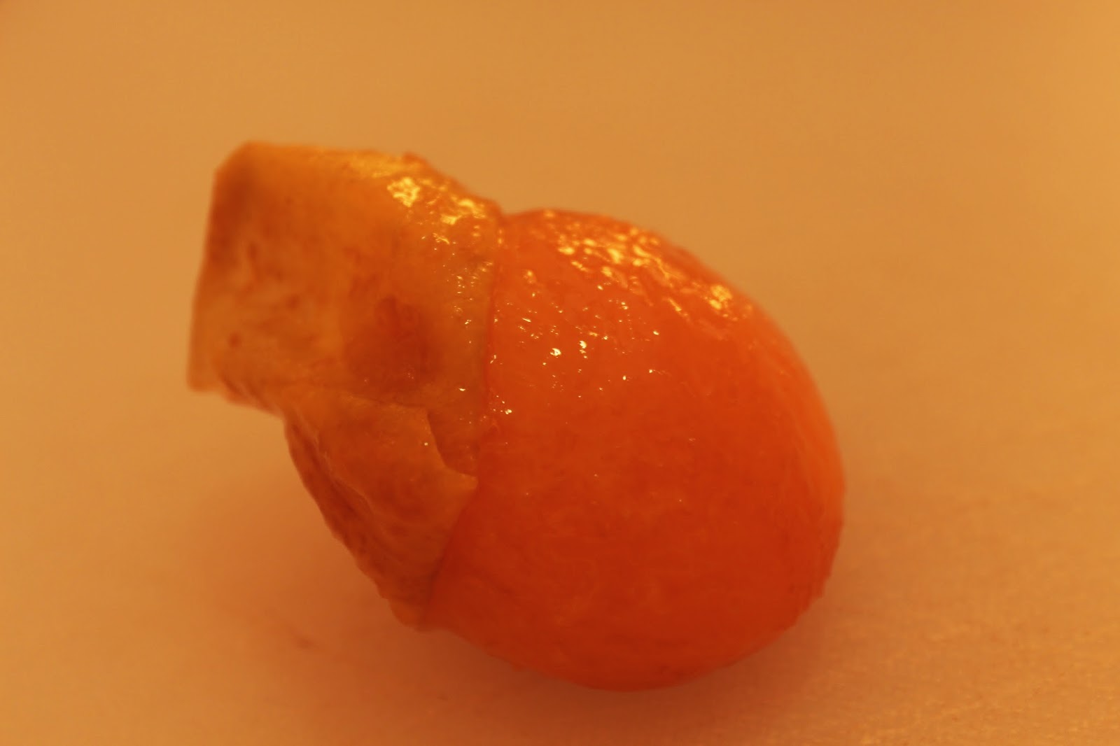 Togliere la pelle e tagliare a metà togliendo il nocciolo.
