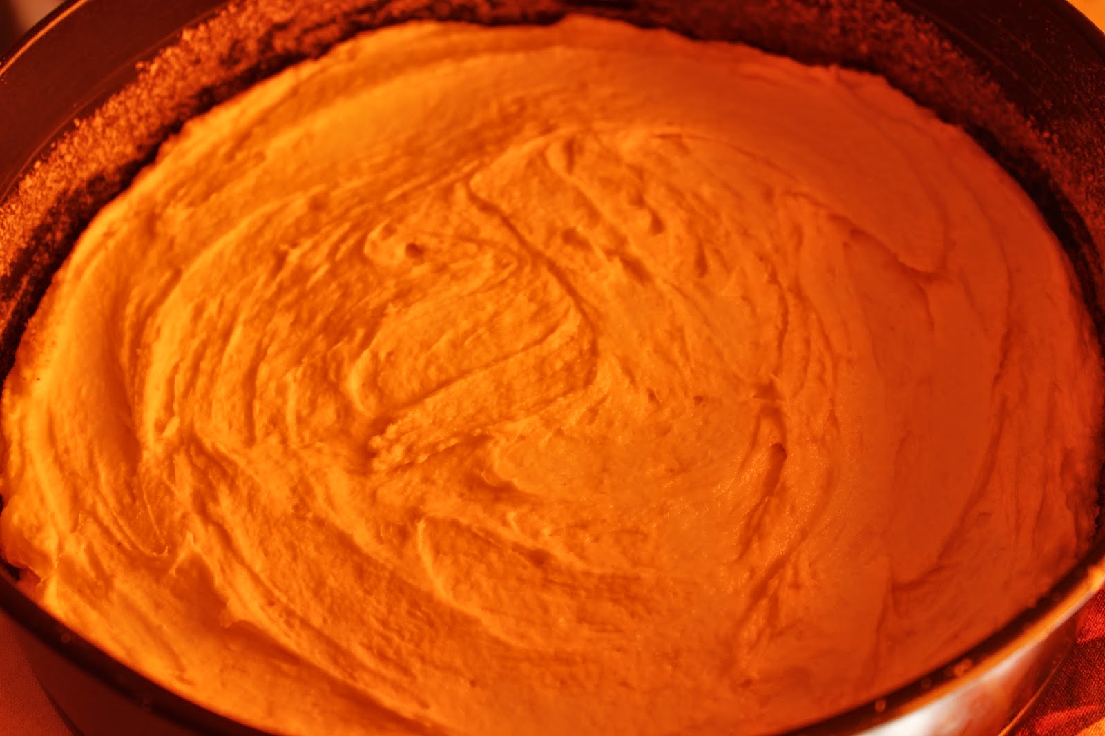 Posmarować formę masłem i posypać tartą bułką, wylać na nią ciasto, wygładzić powierzchnię i nałożyć przygotowane wcześniej morele.