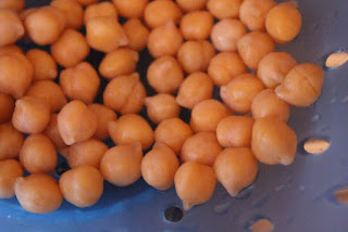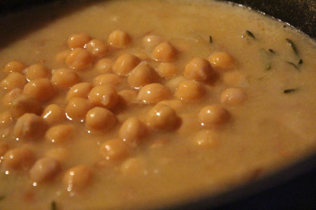 Fate bollire i ceci (lasciandone da parte una manciata) con un litro d'acqua salata.