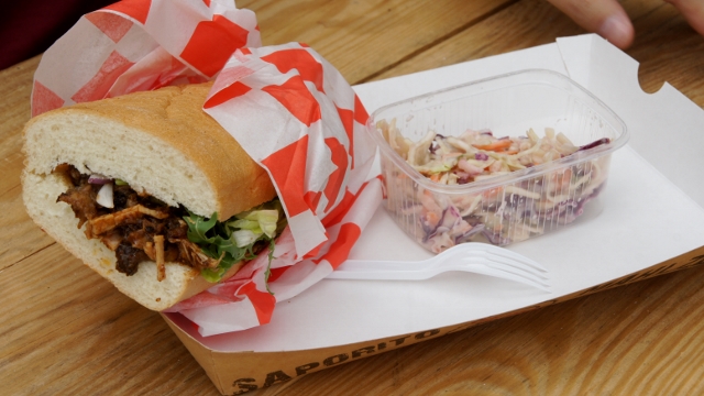 On - oczywiście mięcho! Padło na Smoke BBQ Food Truck, Tutaj otrzymał bułę wypełnioną mięchem, pyszną ale... chyba już jesteśmy za bardzo rozpuszczeni jeśli chodzi o takie mięsne kanapki. Smaczna, szału nie zrobiło. Do buły serwowana była sałatka :) Szkoda tylko że to ostatnie spotkanie na zjeździe w tym sezonie...