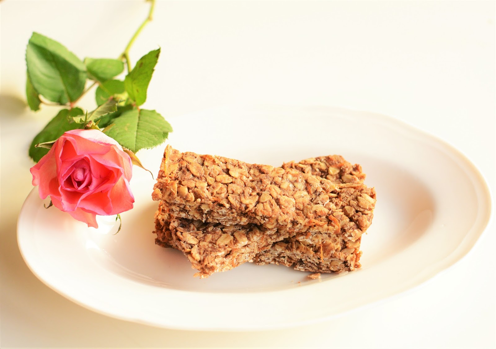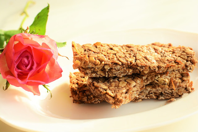 Jutro Tłusty Czwartek. Ulubiony dzień mojego Męża. Pączki, faworki, tłuste ciasteczka.. Hmm.. fajnie by było, gdyby nie fakt, że nie wolno! Nie wiem, czy uda mi się go jakoś upilnować, ale próbę podejmę. W razie co zrobiłam zapas zdrowych smakołyków, które może choć trochę pomogą w utrzymaniu łakomstwa na wodzy.Dziś mam dla Was przepyszne owsiane batoniki z karobem, imbirem i marchewką. Nie zawierają cukru - skutecznie zastępuje go dojrzały banan, jajek ani mąki. Batoniki te, są także całkowicie pozbawione orzechów (których niestety nie mogę jeść) i masła. Słodkie, sycące, zdrowe. Mają w sobie coś wyjątkowego. Chyba chodzi o chrupkość marchewki z ostrością imbiru. Czekoladę i kakao zastąpiłam karobem, mączką z drzewa świętojańskiego, który to naturalnie jest lekko słodki. Z podanej porcji wychodzą dwie średniej wielkości keksówki, czyli około 20 batoników. Och ile to jest jedzenia! Ile podjadania, ślinienia się, mlaskania.