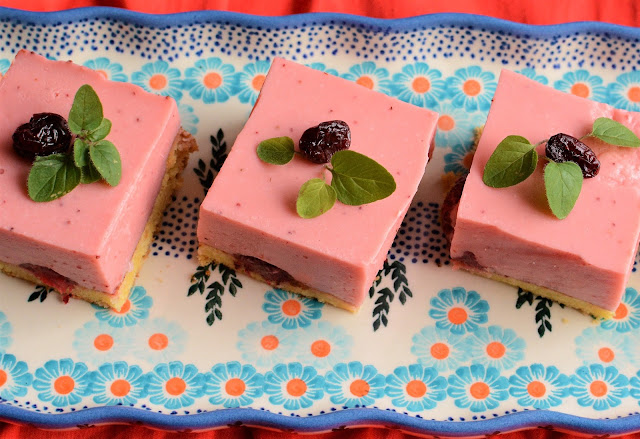 Pomimo, że szyki popsuła nam nieco niespodziewana infekcja, uśmiech na twarzy męża na widok ciasta pozostał bezcenny. Nie ma to jak powiew lata w środku zimy. Aż się od razu człowiekowi robi ciepło na sercu. Pomyśleliśmy też wspólnie, że pomimo, iż nadchodzą Święta Bożego Narodzenia, ciasto to może być doskonałym uzupełnieniem Świątecznego stołu. Napisałam pomimo, ponieważ Święta te kojarzą mi się bardziej z ciężkimi wypiekami, tłustymi sernikami, makowcami, drożdżowcem. Lekkie truskawkowe ciacho klimatem bardziej zbliżone jest do Świąt Wielkanocnych. Wystarczy jednak spojrzeć na to trochę inaczej. Kiedy przepełnieni, najedzeni odejdziemy od świątecznego obiadu, wybierając słodkie z chęcią sięgniemy po coś co nas odświeży i pobudzi. To ciasto jest właśnie takie. Lekkie niczym puch i bardzo smaczne.