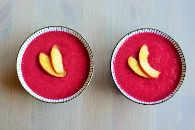 Truskawki, buraki, nektarynki..czy może być coś piękniejszego? Latem, kiedy słońce wyciska z nas ostatnie poty i z rozczuleniem marzymy o cieniu. Tak, chłodnik truskawkowy – oto jest rozwiązanie.