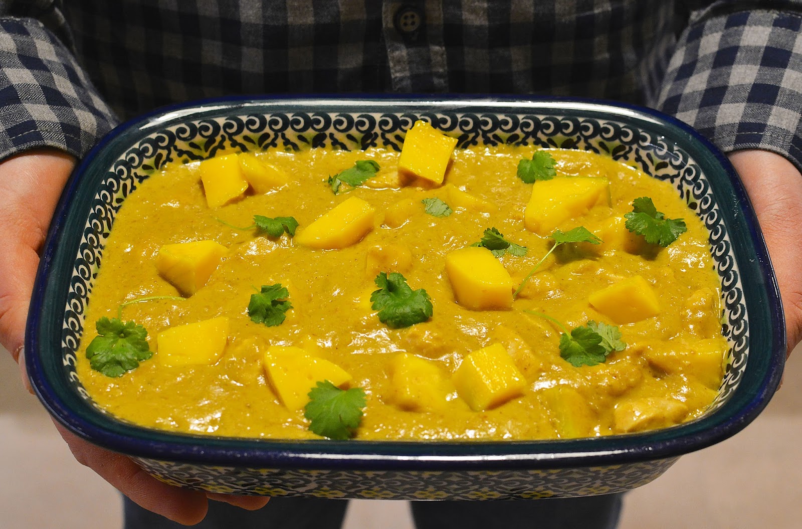 Curry robię od czasu do czasu, szczególnie kiedy jestem zmęczona, osłabiona i zziębnięta. Ponieważ ten weekend nie należał do szczególnie prostych i wyssał ze mnie resztki energii, musiałam się jakoś pobudzić. Curry z kurczakiem i mango zdecydowanie spełniło swoje zadanie!