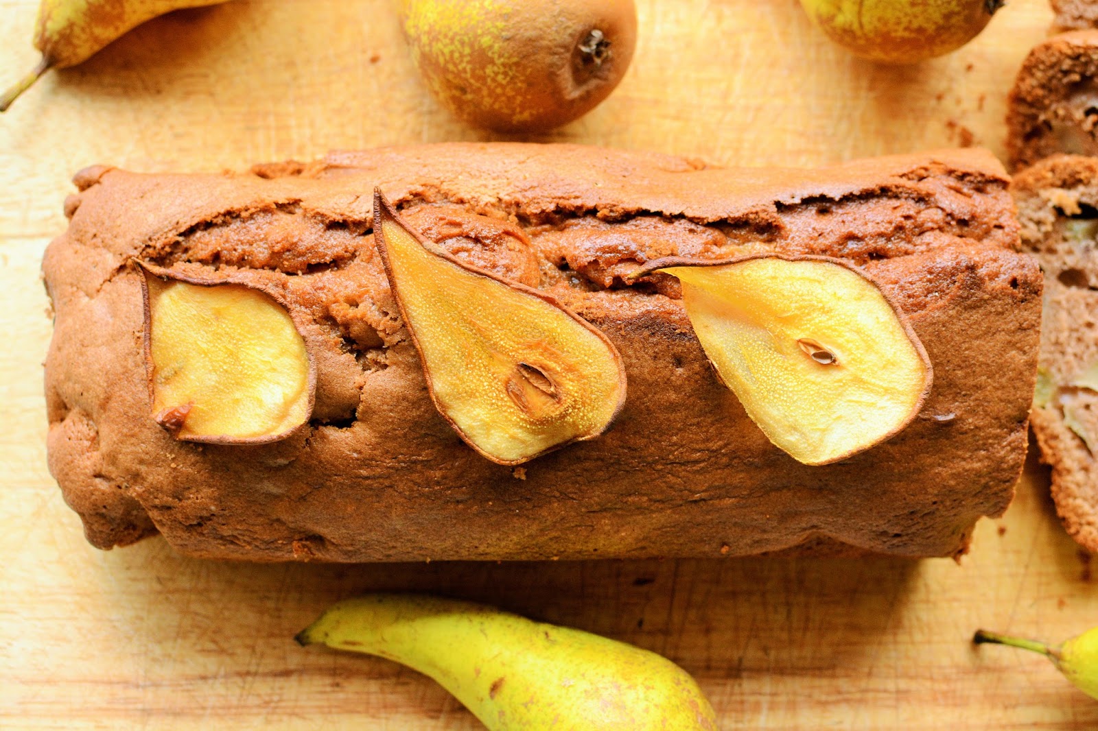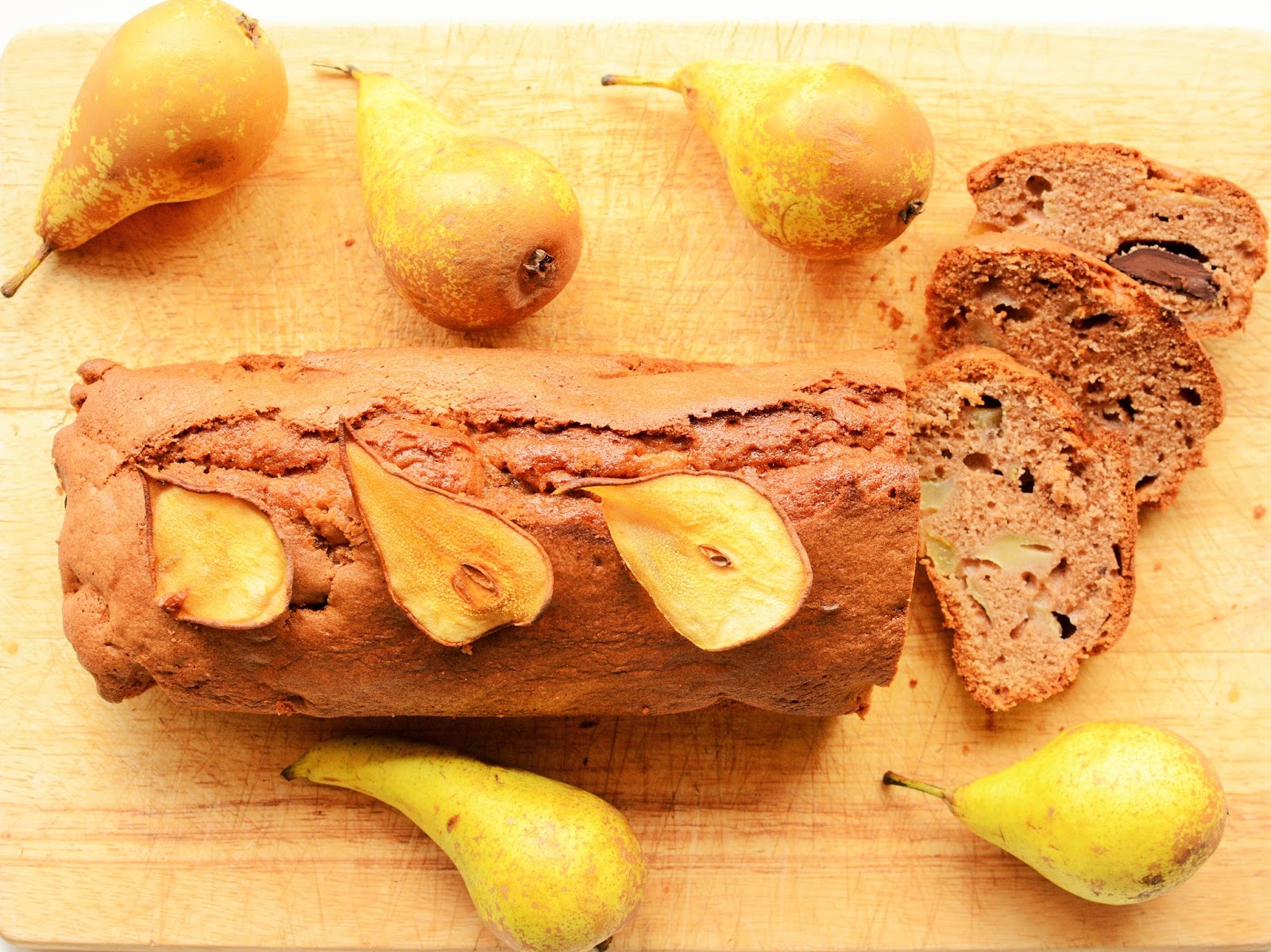 Ciasto jest delikatne i puszyste. Słodkie gruszki podczas pieczenia zyskały karmelowego posmaku a ich tekstura stała się gładka i aksamitna. Kawałki gorzkiej czekolady dodatkowo podbijają ich smak zamieniając całość w błogą rozkosz.
