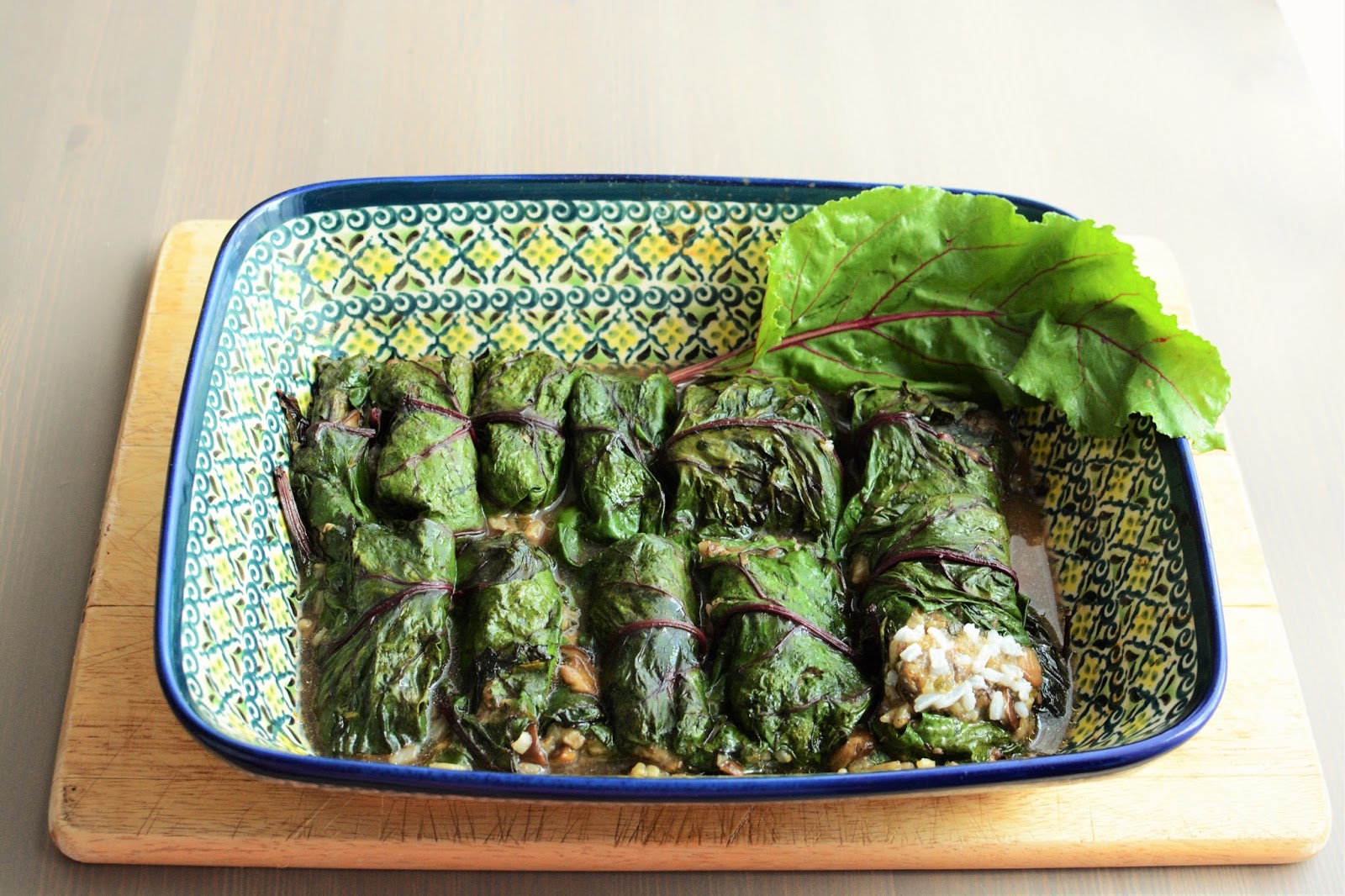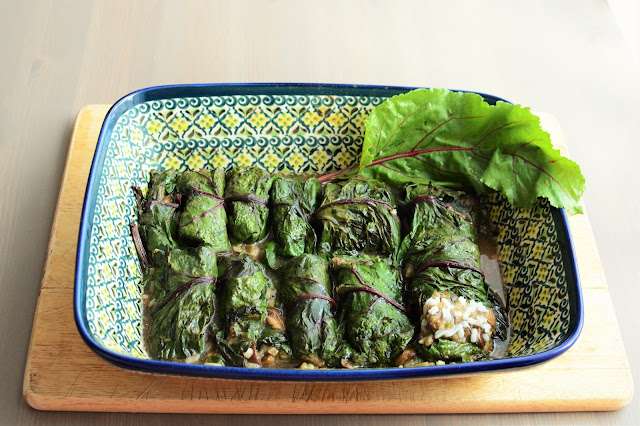 Od jakiegoś czasu chodziły za mną gołąbki w botwince. Wiedziałam, że skoro wciąż jakoś nie jest mi po drodze, żeby je przygotować musi nadejść odpowiedni moment. I tak się stało kilka dni temu, kiedy to w lasach nieopodal naszego domu pojawiły się grzyby. Cudowne, lśniące podgrzybki, dumne prawdziwki, kurki i maślaczki. Idealne, piękne, pyszne. Musiałam je wykorzystać i właśnie przy tej okazji pomyślałam o botwince. A gdyby tak zawinąć w nią gołąbki grzybowe. To był prawdziwy strzał w dziesiątkę. Oczywiście nie obyło się bez kilku pękniętych liści i nie do końca foremnych okazów. Nic straconego, to normalne. Wystarczyło troszkę praktyki i cierpliwości i powstały wspaniałe botwinkowe gołąbki. Bardzo polecam. W połączeniu z sosem czosnkowym są oszałamiające!