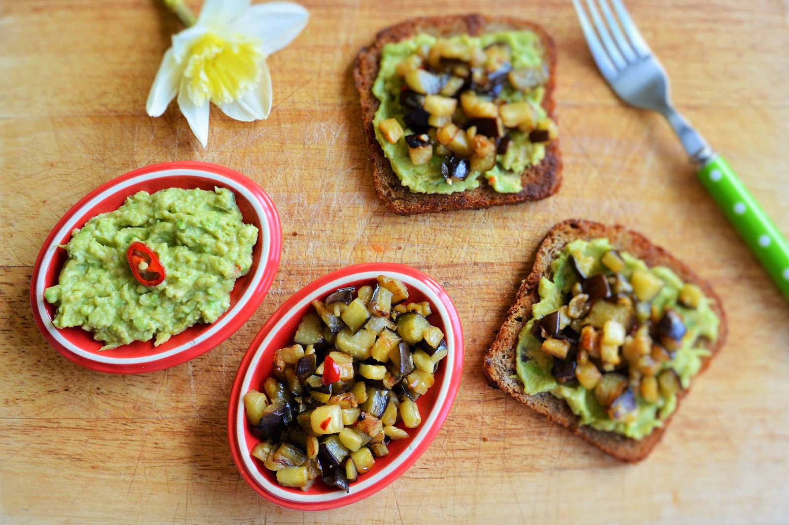 Raz na jakiś czas lubię się porządnie rozpieścić na śniadanie. Ugotować sobie coś co mnie pozytywnie nakręci na całą resztę dnia. Dziś padło na guacamole z bakłażanem. Nie mogło być lepiej. Ten dzień będzie wspaniały!