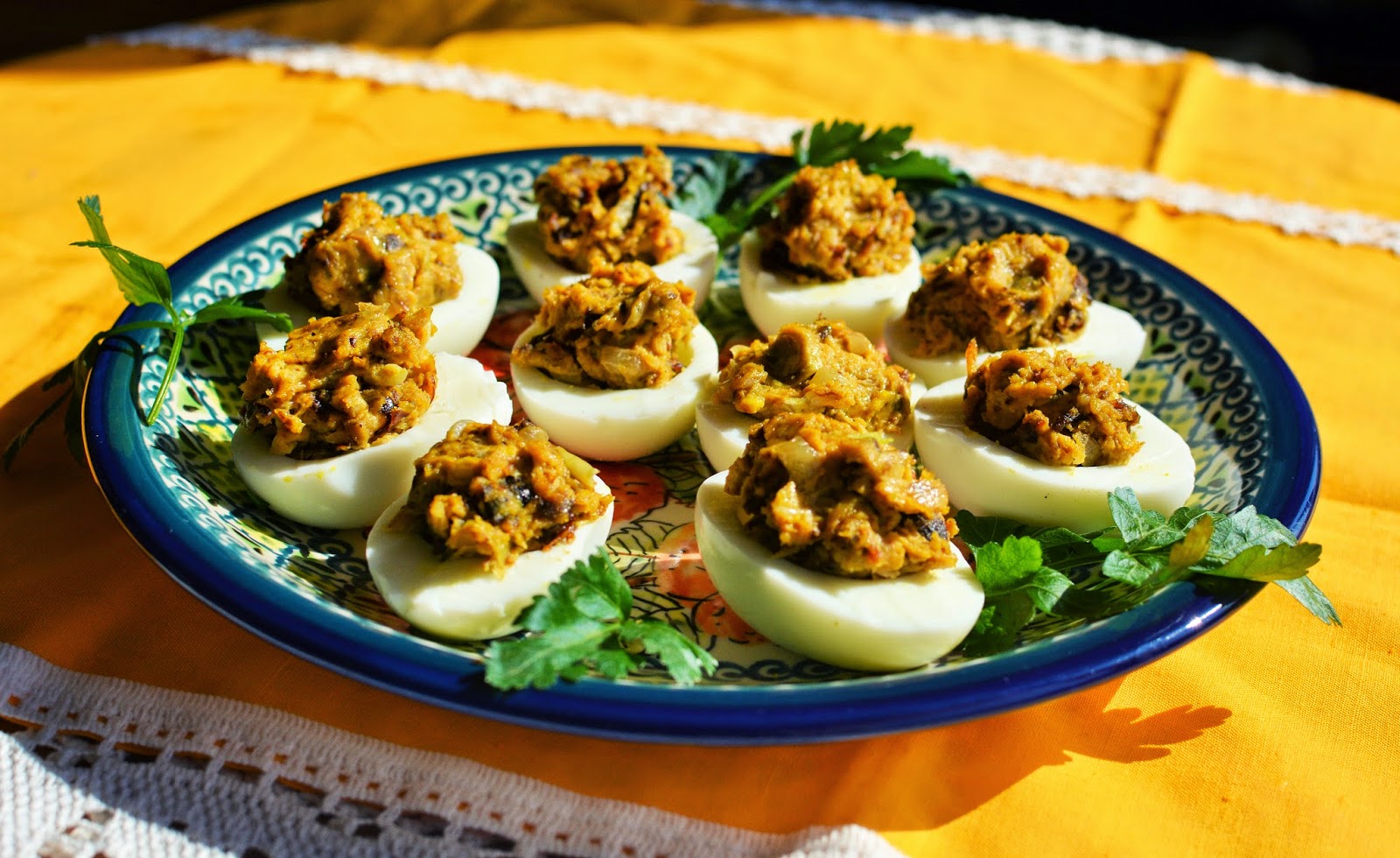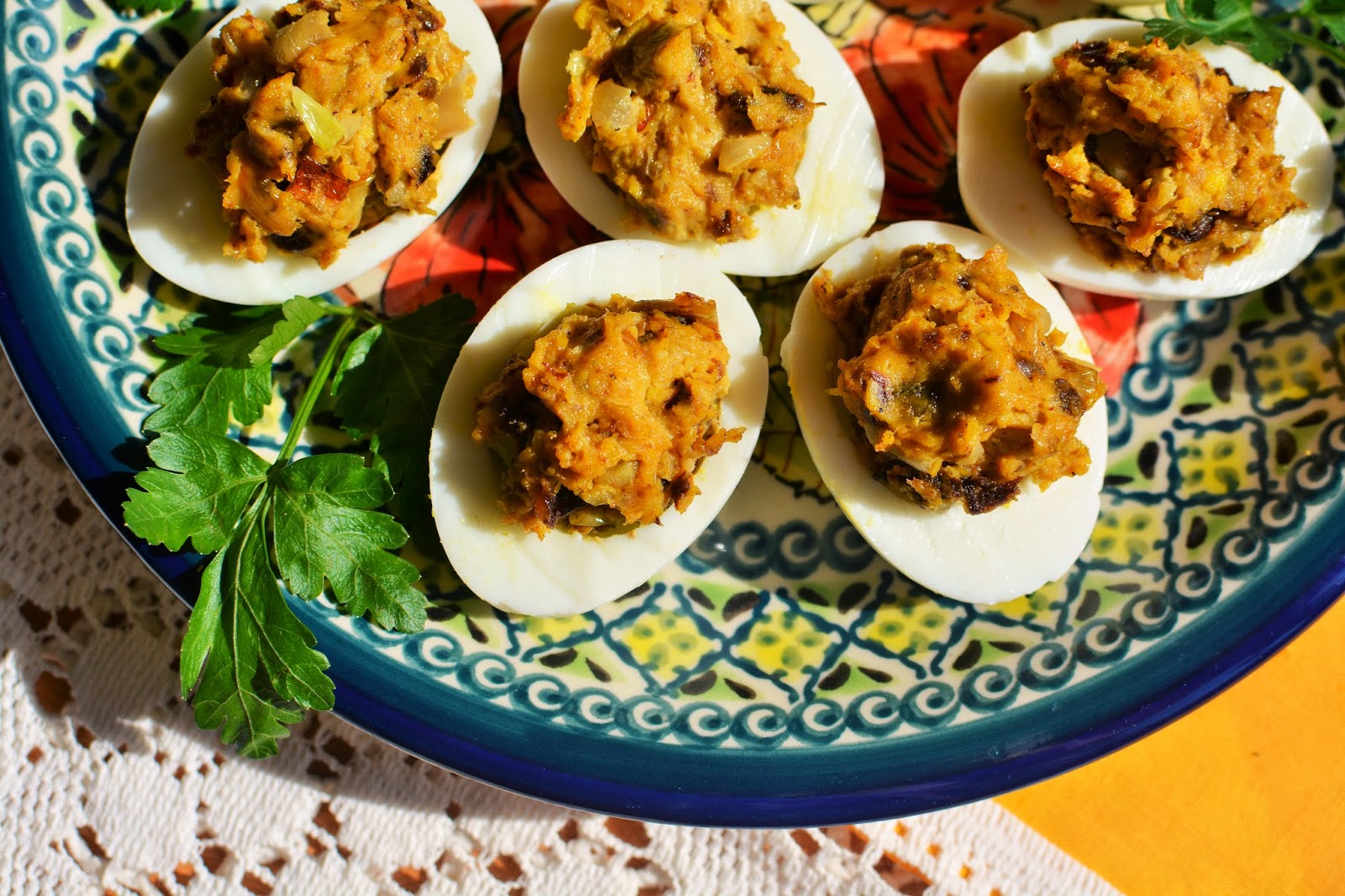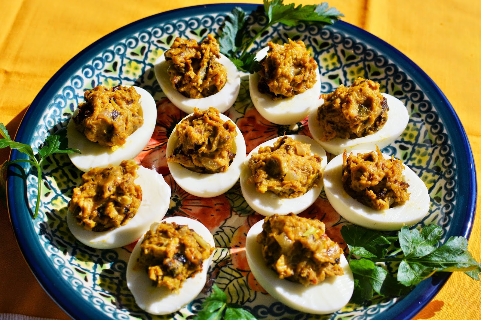 Jajka nadziewane suszonymi śliwkami
