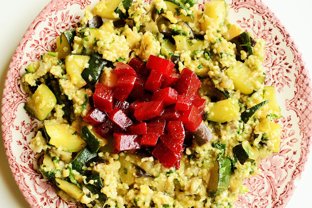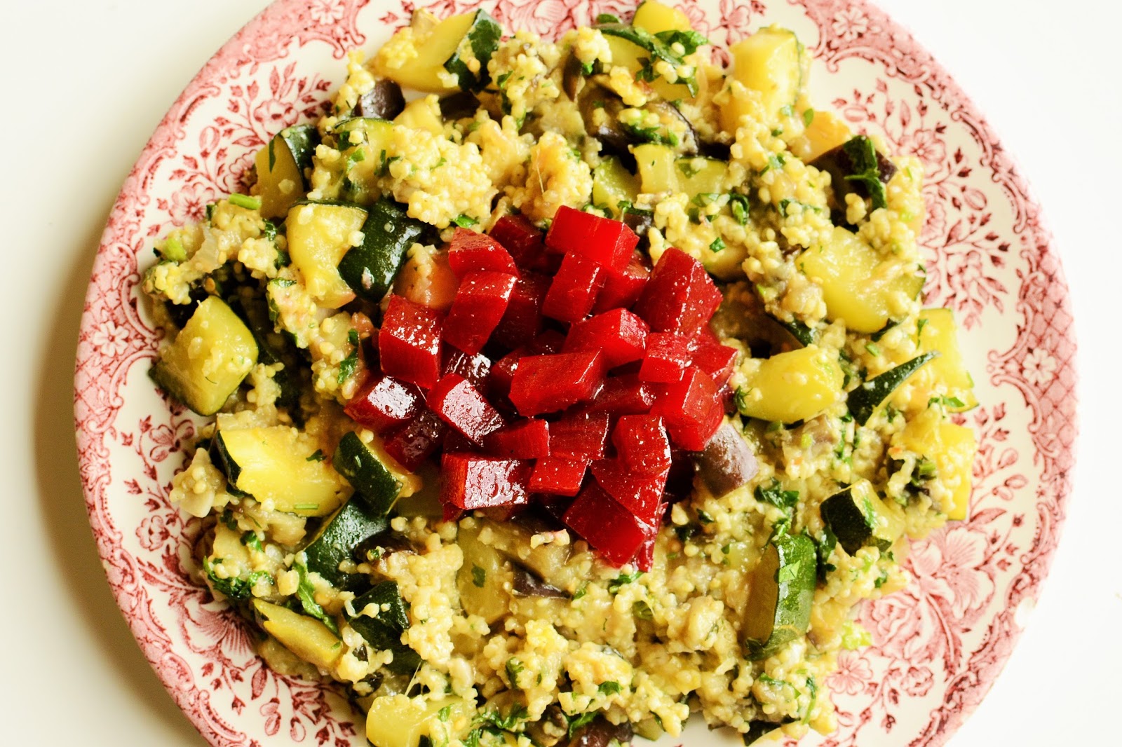 Kasza jaglana z cukinią, bakłażanem i buraczkami w słodko balsamicznej marynacie:
