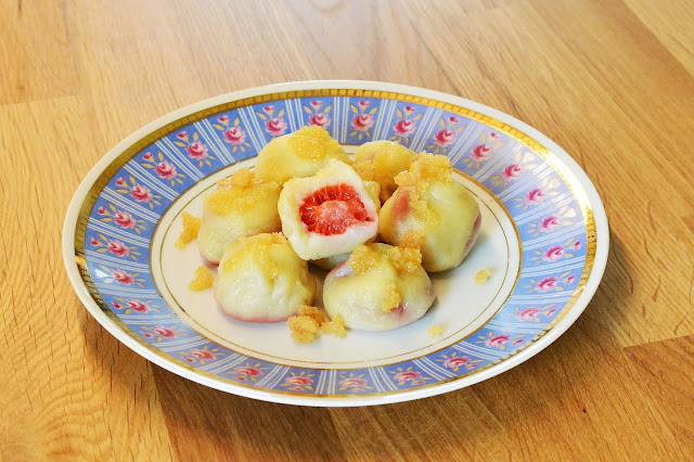 Czasem wydaje mi się, że do przygotowywania mącznych dań trzeba mieć predyspozycje i serce. Może fakt, że nie jestem ich wielką fanką sprawia, że biorę się za nie tak sporadycznie, a może to wieczna obawa przed tyciem. Nie wiem. Tak czy siak, kiedy już są, wszyscy zajadamy się nimi ze smakiem. Bo co jest lepszego niż mięciutkie, niewielkie knedle z soczystymi truskawkami polanymi masłem z cukrem? Prawdziwe niebo w gębie.