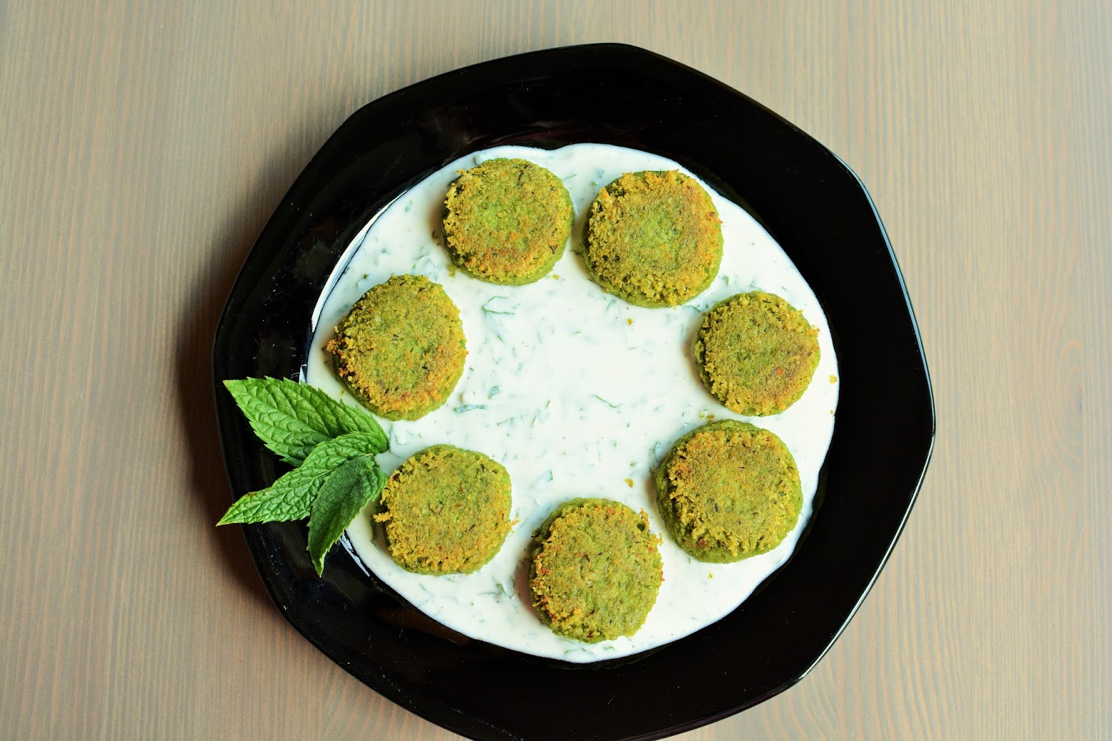 Kotleciki z bobu i słonecznika na miętowym sosie: