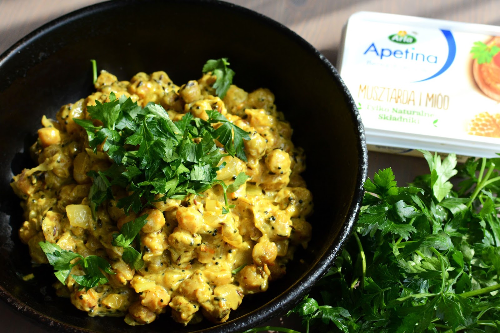 Moje curry z ciecierzycy jest pełne smaku. Przyprawy uzupełniają się wzajemnie sprawiając, że całość jest wyrazista a smak głęboki. Ciecierzyca choć miękka, posiada lekko orzechowy posmak i jest bardzo sycąca. Dzięki dodatkowi kremowego serka, sos stał się aksamitny i pachnący. Powiem Wam szczerze, że w tym momencie jest to moje danie numer jeden. Pyszne i zdrowe. Idealnie w punkt!