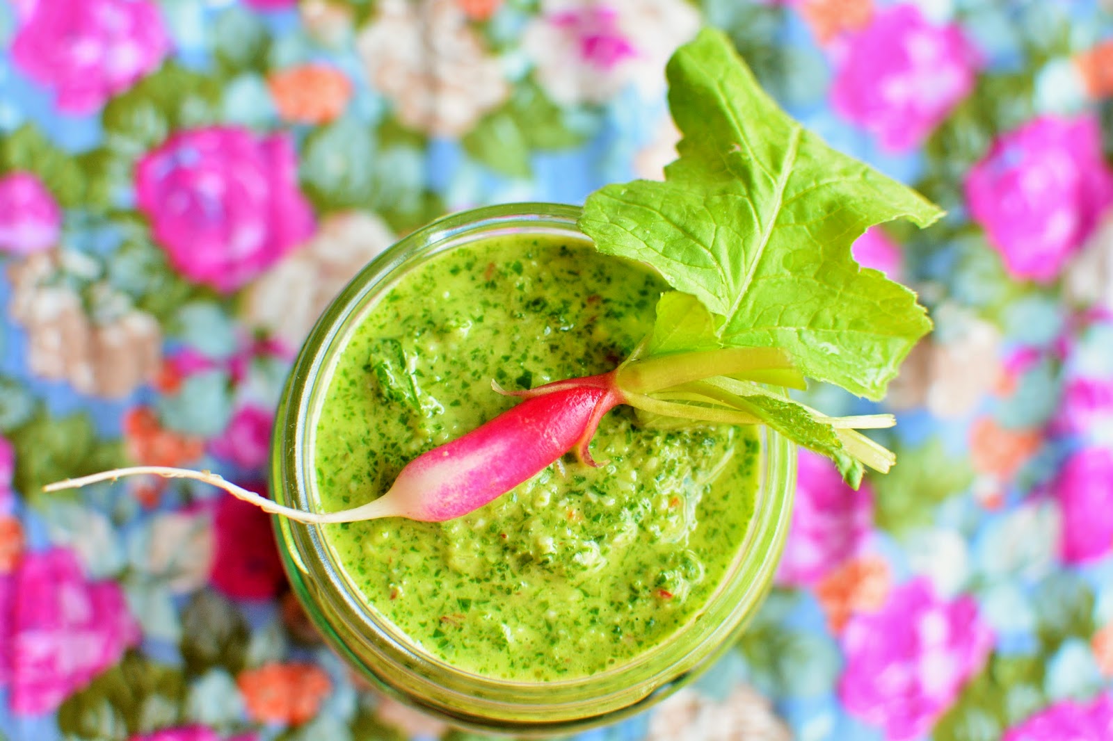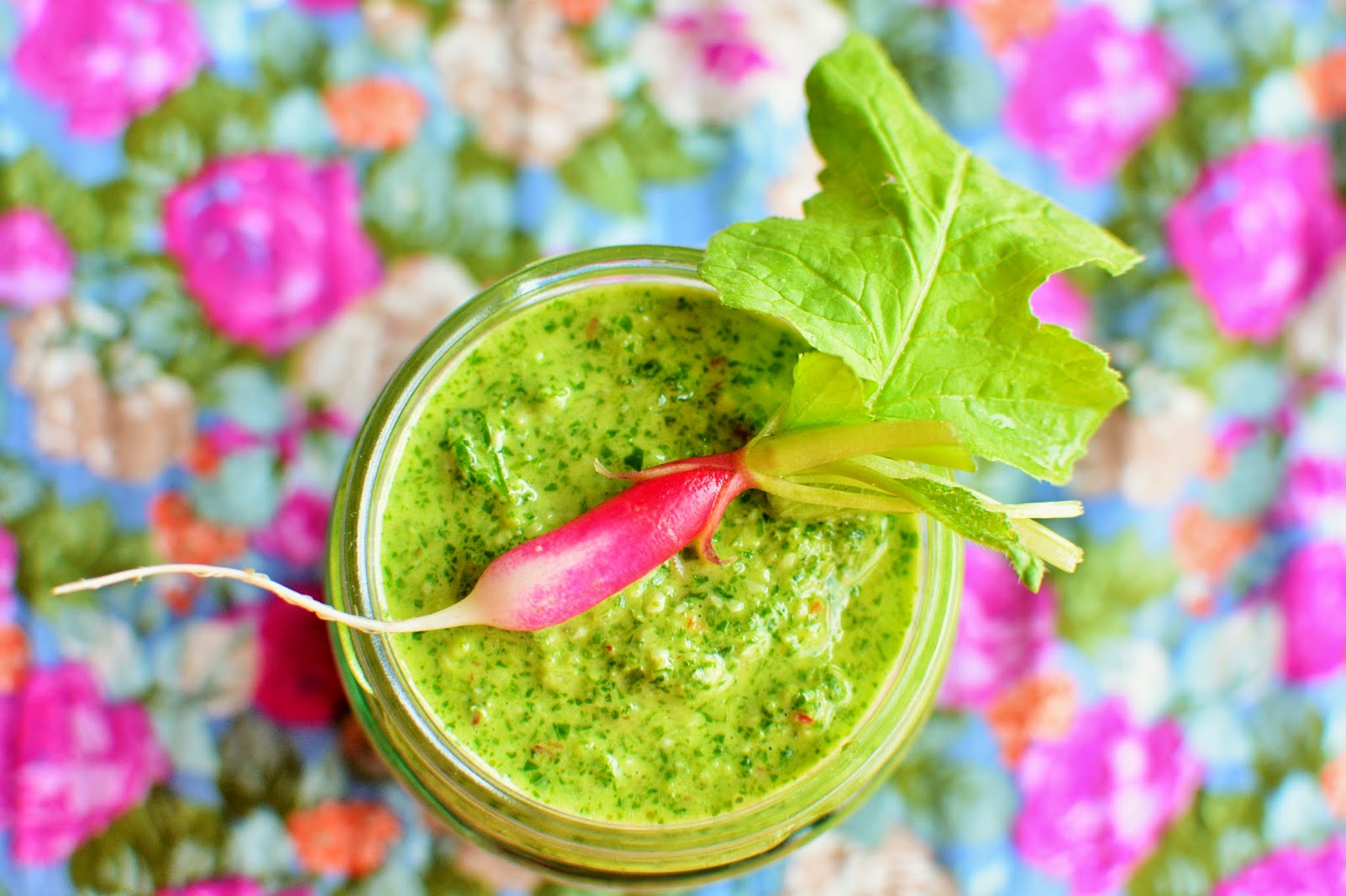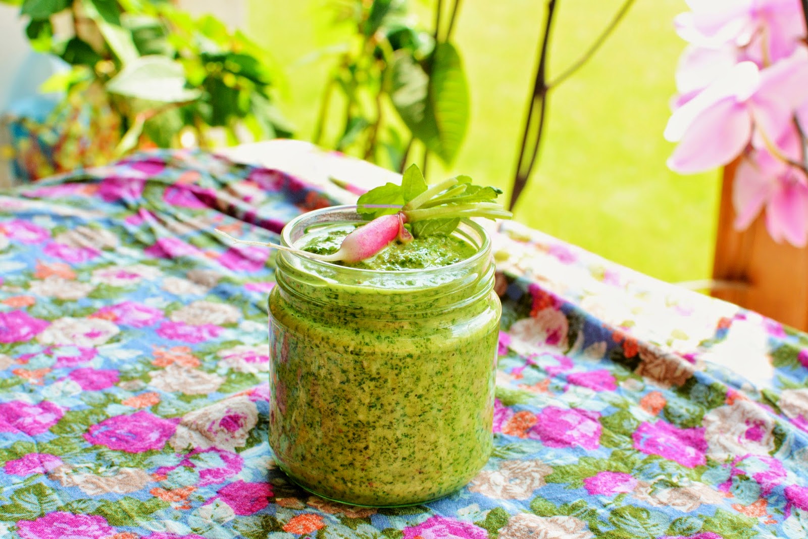 Nie lubię marnotrawstwa.. Gotując brokuła zawsze wykorzystuję ogonek, a jedząc rzodkiewki z rozkoszą przerabiam ich liście na mnóstwo przeróżnych pyszności. Dziś podzielę się z Wami przepisem na pesto z liści rzodkiewek. Wspaniałe!