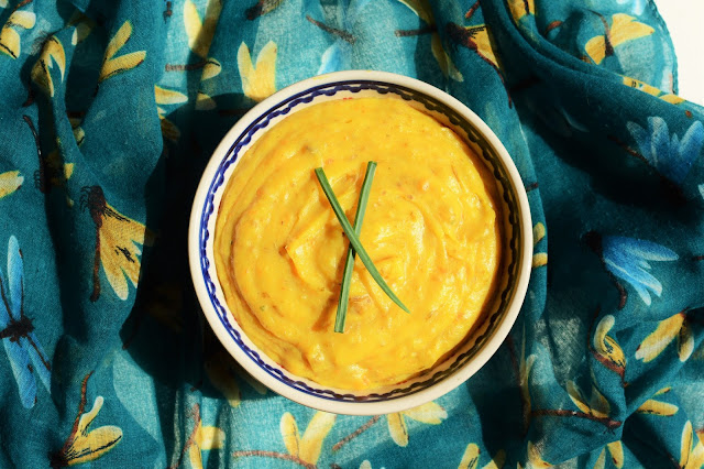 Jeśli w tym momencie zrobiliście smutną minę, zawiedzeni, że moje ziemniaczki tracą na tradycyjnym, maślanym smaku, to jesteście w błędzie. Otóż to! cały myk polega na tym, że moje dzisiejsze puree niewiele różni się z smaku od tego, które pamiętam z domu, ale całkowicie pozbawione jest zbędnych jak dla mnie dodatków, czy też pustych kalorii. Jest to świetna nowina, dla wszystkich Was, którzy drobiazgowo zwracacie uwagę na to co ląduje na waszym talerzu, nie jecie nabiału, bądź po prostu, zwyczajnie macie ochotę na odmianę.