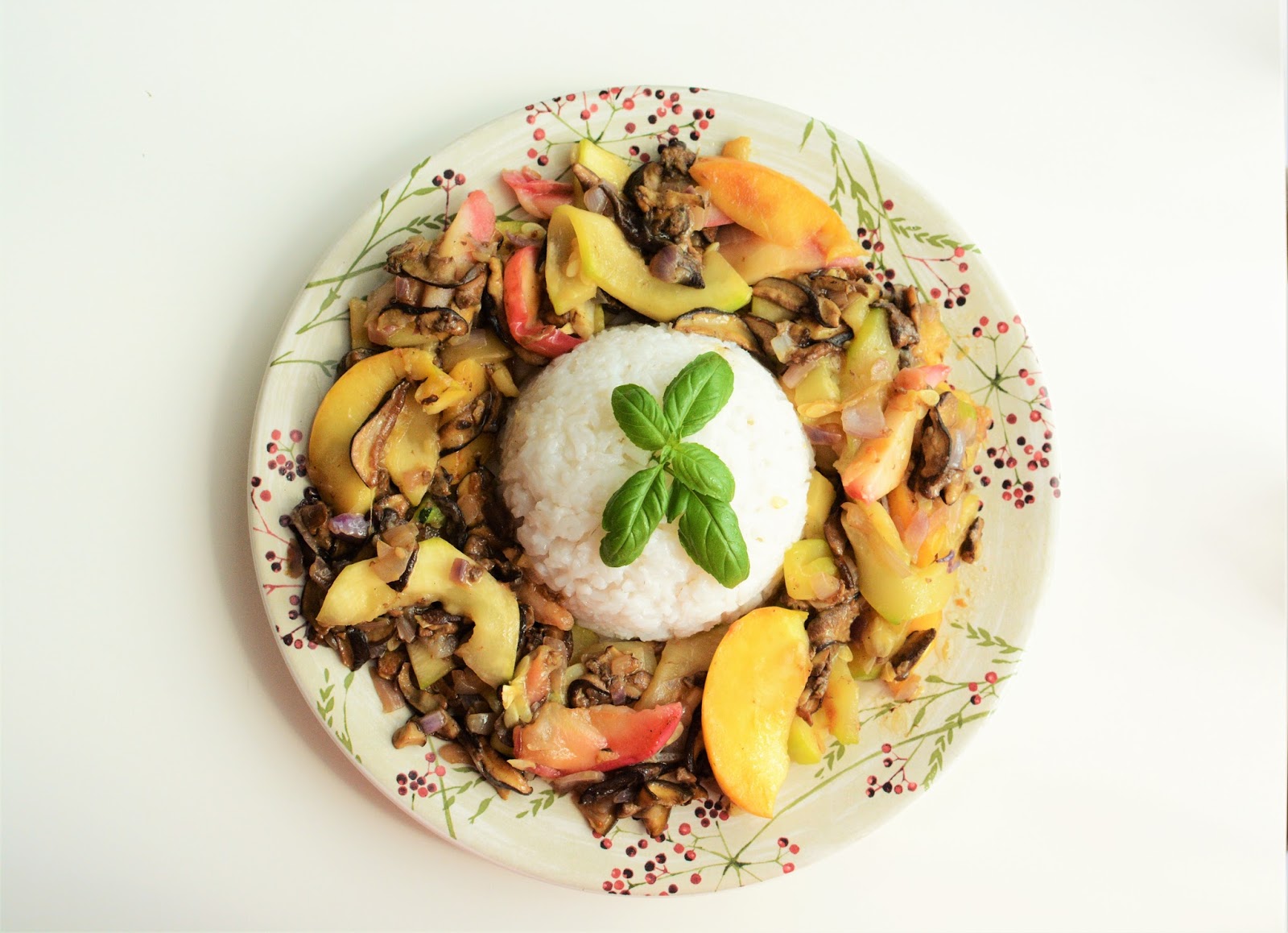 Ryż z podgrzybkami, cukinią i papierówkami: