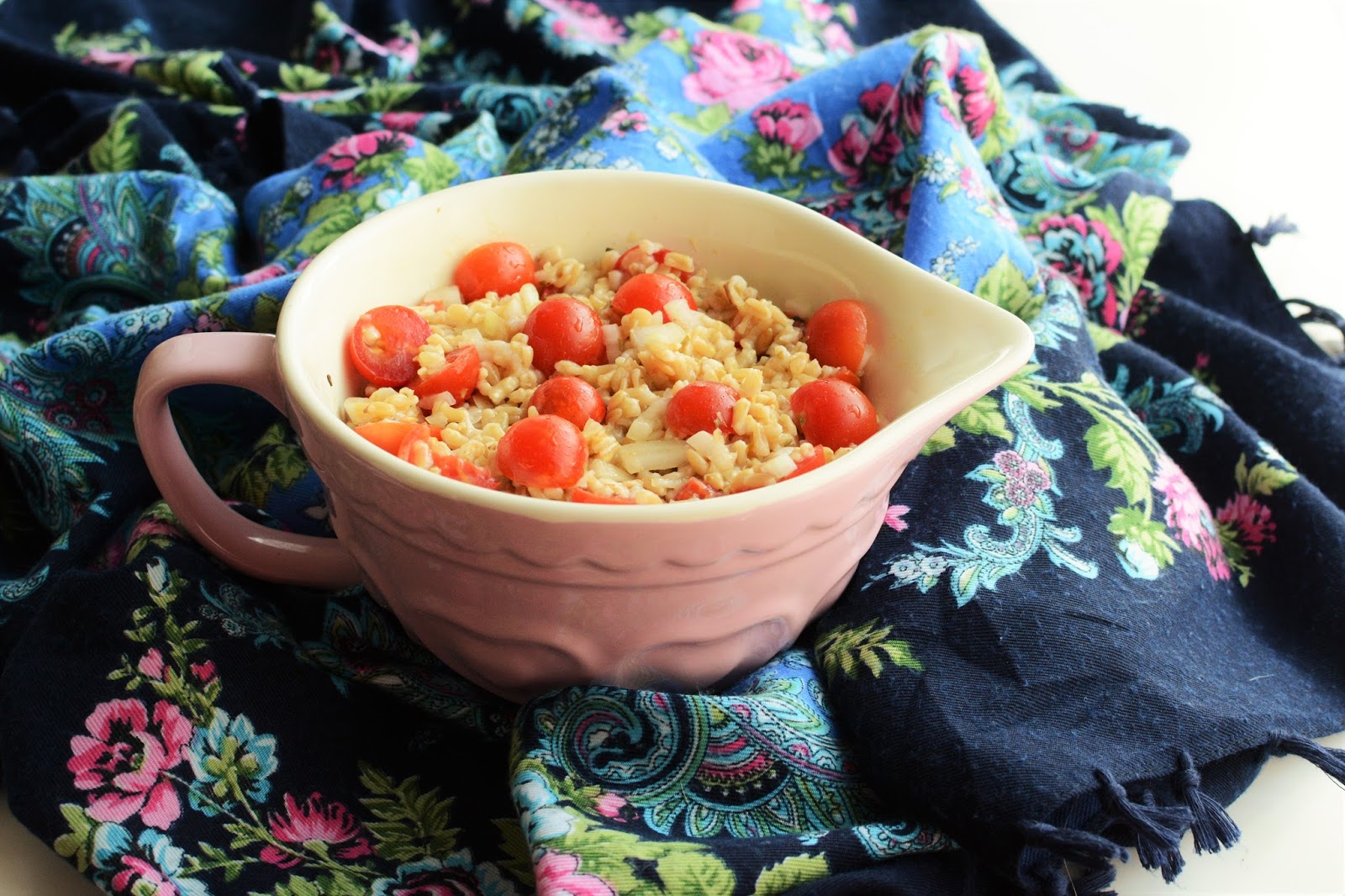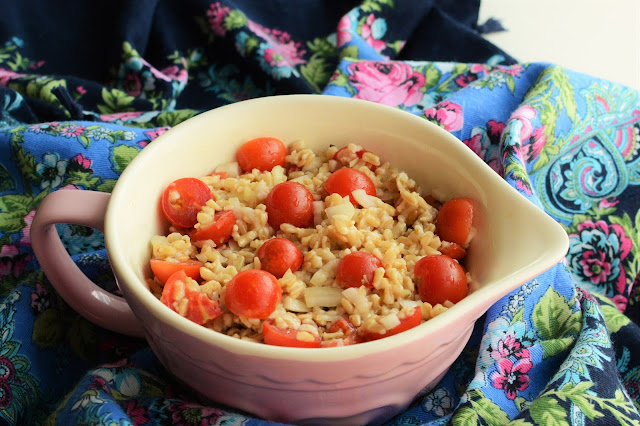 Czy u Was w domu też jedliście do śniadania pomidory z cebulką? U mnie to rodzinny klasyk. Mogło nie być chleba, ale talerz pomidorów z cebulą i pieprzem być musiał. Dlatego dziś u mnie taka mała wariacja na temat. Zamiast pomidorów sałatka z pomidorami, tyle, że z dodatkiem pęczaku.