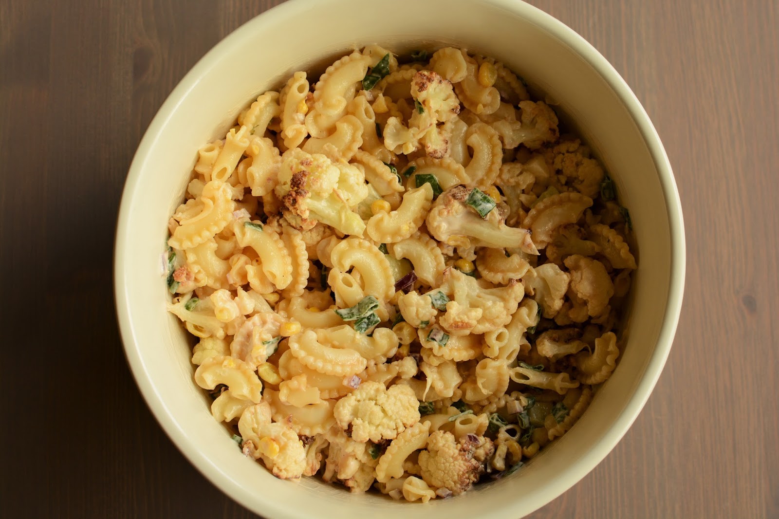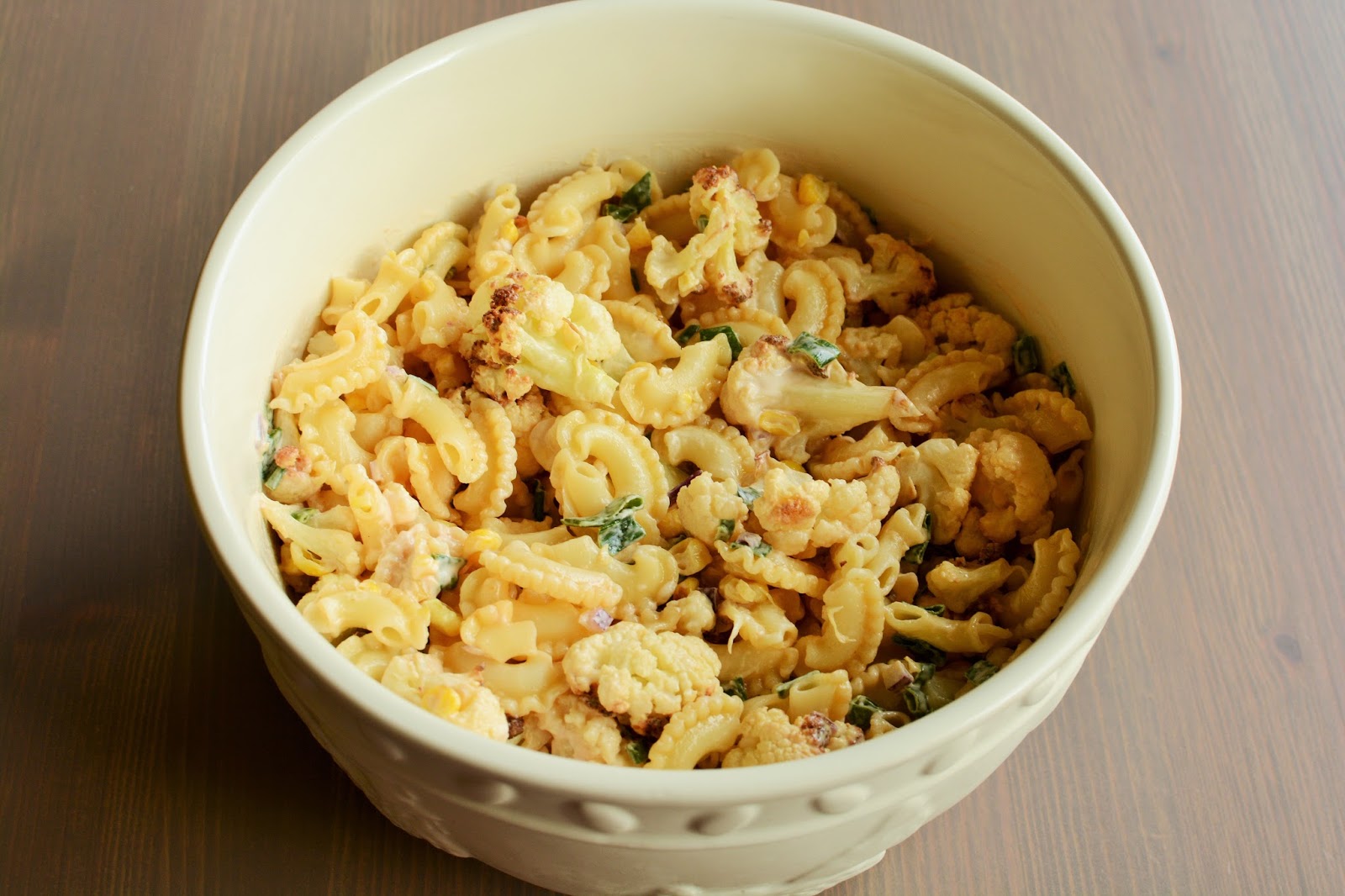 Sałatka z pieczonego kalafiora i kukurydzy z makaronem: