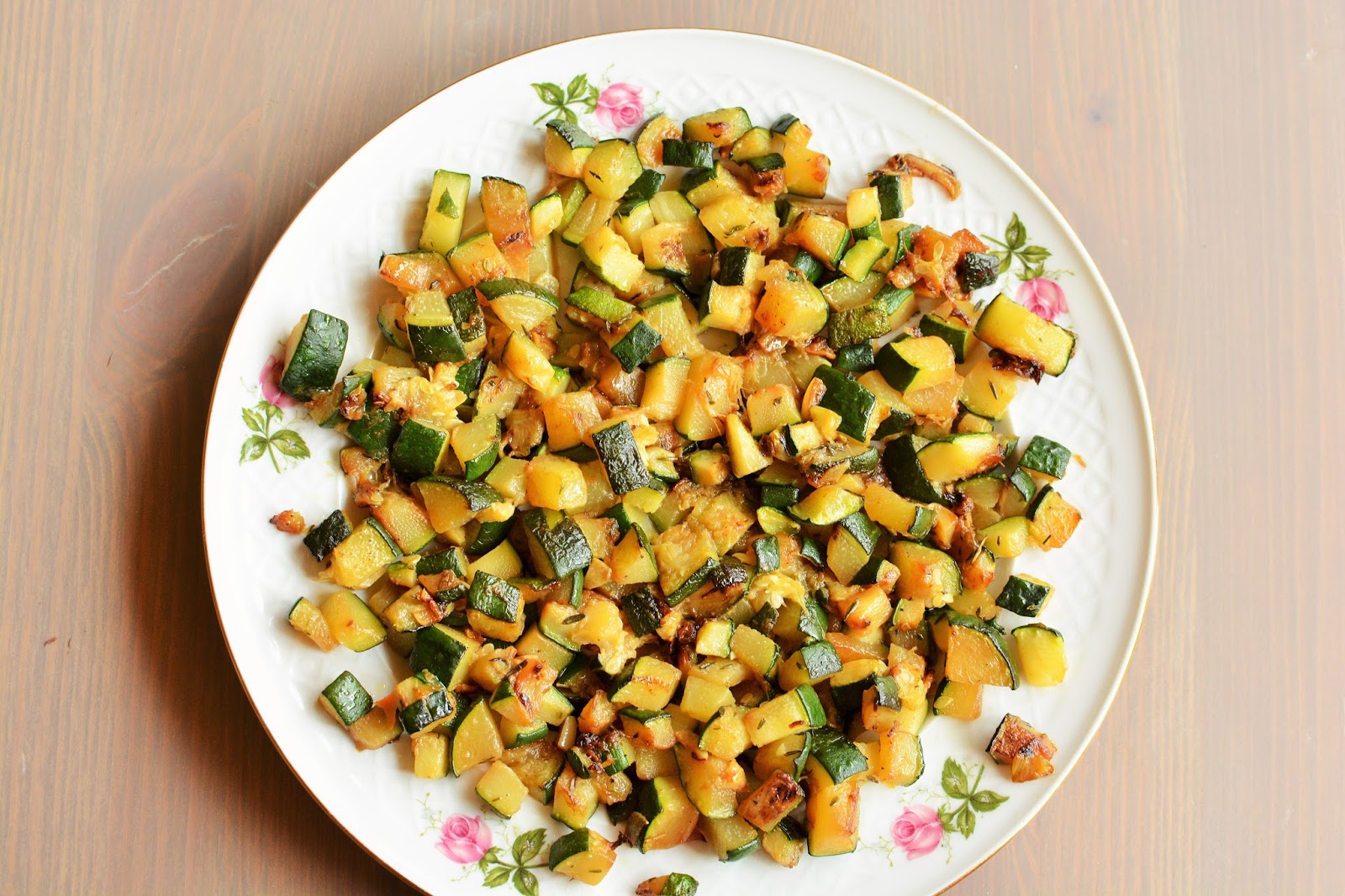 Taką cukinię przygotowuję bardzo często, zmieniając jedynie przyprawy lub łącząc ją z innymi warzywami. Zawsze wzbudza zachwyt, pomimo, że przecież to tylko a może AŻ – cukinia. Mówiłam Wam kiedyś, że to moje ulubione warzywo? Tak! Zdecydowanie należę do wielkich fanów cukinii. Uważam, że ma ogromny, niedoceniony potencjał. Nadaje się na surowo, z piekarnika, z patelni, nawet w formie pasty do chleba. Jest lekkostrawna, zdrowa i pyszna. A wersja, którą Wam dziś pokazuje to świetny dodatek do obiadu, albo wierzchnia warstwa grzanki. Zamknijcie oczy i wyobraźcie sobie przypieczoną kromkę chleba, natartą czosnkiem. A teraz wyobraźcie sobie, że nakładacie na nią smażoną cukinię z tymiankiem.. Czujecie to?? Bo ja już mam ślinotok.