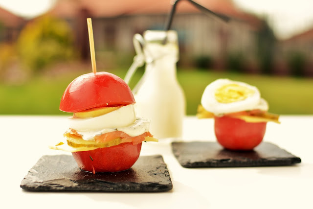 Śniadanie to najważniejszy posiłek dnia. Powinno być zdrowe, niezbyt ciężkie, ale równocześnie sycące, zbilansowane i ...pyszne! Dziś mam dla Was idealną propozycję, która spełni wszystkie wyżej wymienione oczekiwania. Burgery, które zamiast puchatej bułki mają słodkie mięsiste pomidory, a zamiast tłustego kotleta, wędzonego łososia, jajko i pyszny, jogurtowy sos koperkowy.