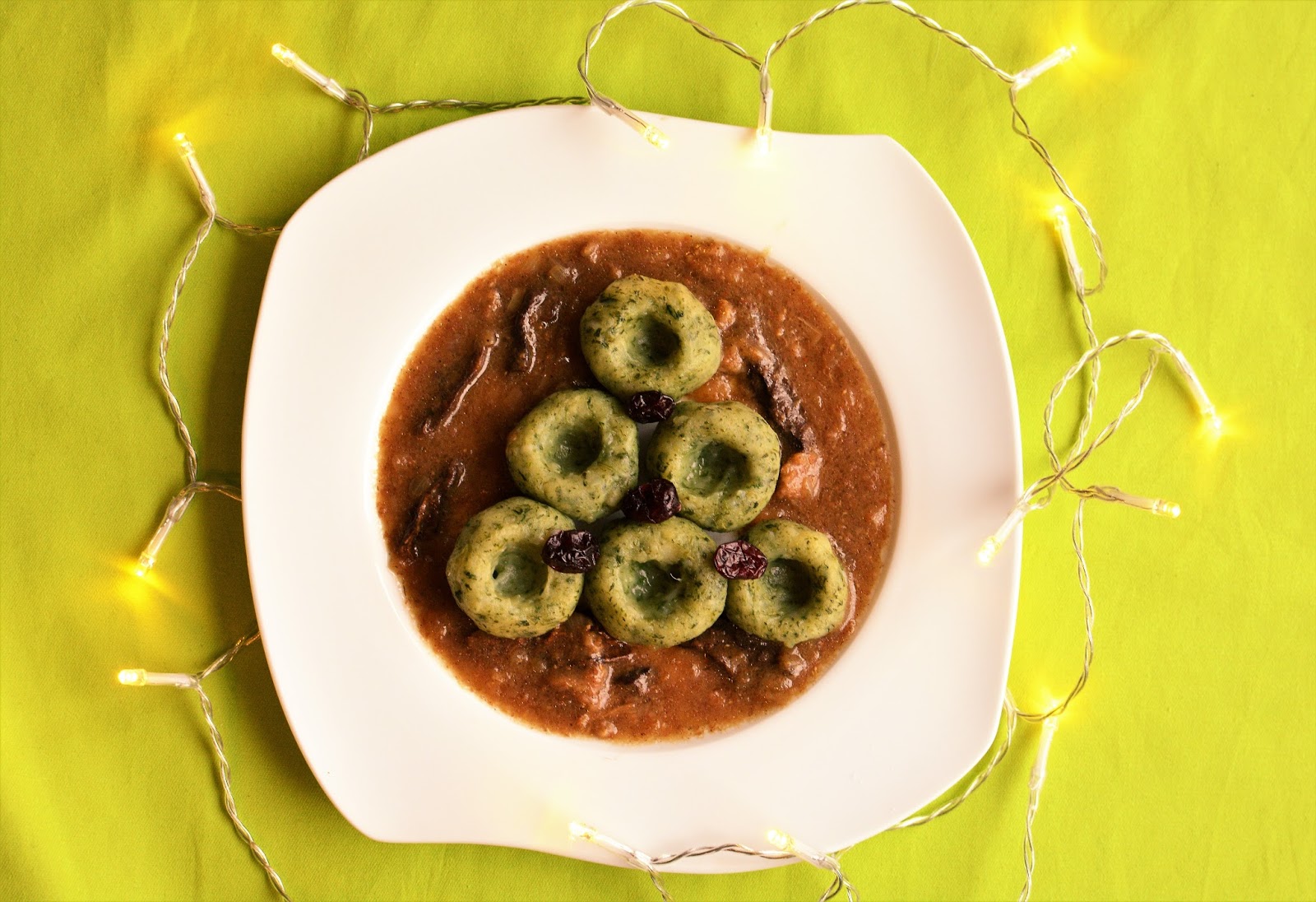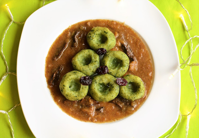 Kluski śląskie ze szpinakiem również są świąteczne. Piękny, zielony kolor sprawia, że ułożone na talerzu zamieniają się w obiadową choinkę. Jestem pewna, że nie jedno dziecko straciło by dla nich głowę.