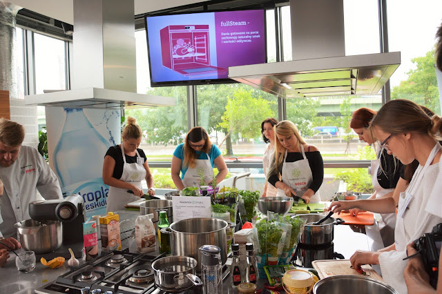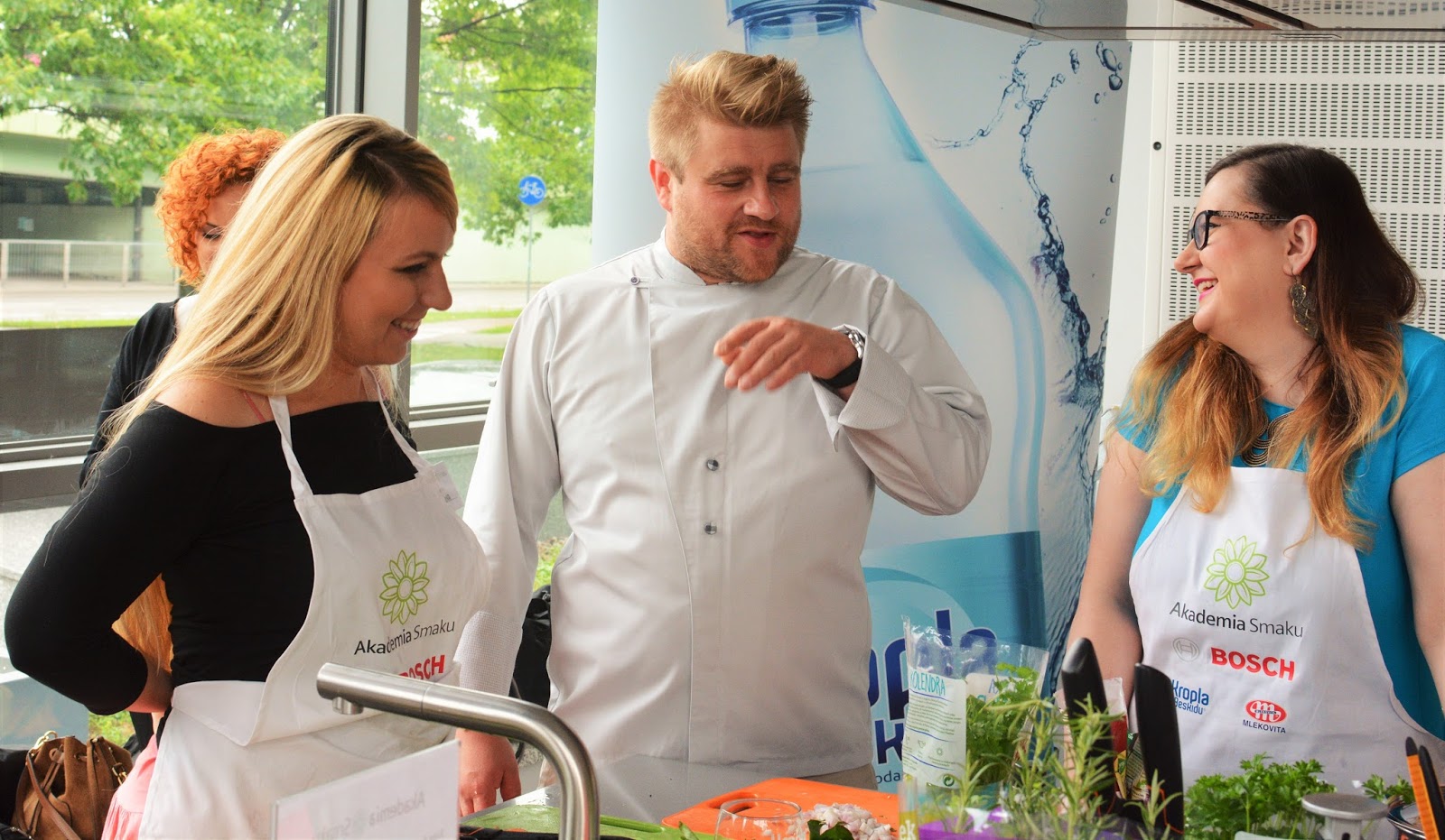 13 lipca miałam przyjemność wziąć udział w super warsztatach organizowanych przez Akademię Smaku Bosch, Kroplę Beskidu oraz Mlekovitę. Tym razem tematem warsztatów była kuchnia wegetariańska. Tym bardziej wydarzenie to sprawiło mi ogromną przyjemność, gdyż od dawna jestem ogromną fanką kuchni roślinnej. Warsztaty poprowadzili Tomek Jakubiak, Tomek Lach oraz Kasia Glinka, zaś uczestnikami byli laureaci konkursu organizowanego przez Akademię Smaku, na najciekawsze wegetariańskie danie. Warsztaty miały na celu podkreślenie wielowymiarowości kuchni roślinnej oraz pełni smaku, którą z łatwością możemy uzyskać właśnie z warzyw.