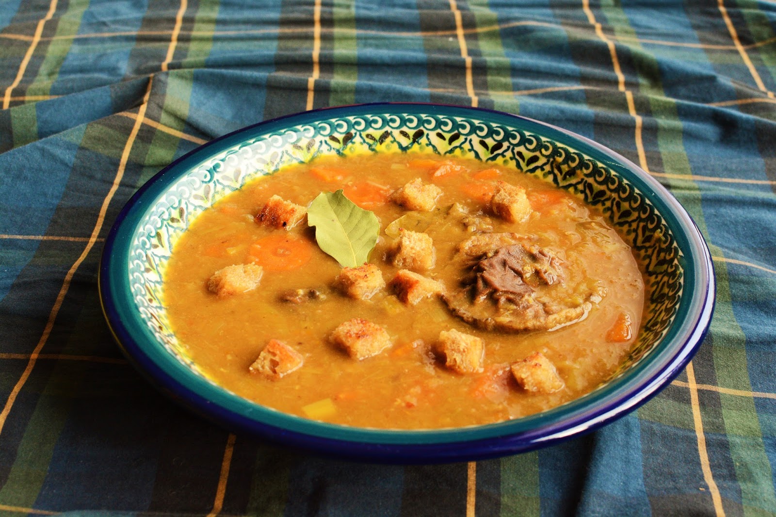 Jeśli nie jecie zbyt często gęstej, soczewicowej zupy, powiem Wam w skrócie jak to jest. Zupa jest dość ostra, ale nie za bardzo. Soczewica w połączeniu z mocno rozgotowanymi warzywami zamienia się w ustach w czysty aksamit. Z każdą sekundą czujecie coraz więcej. Kubki smakowe wariują. Zmysły się wyostrzają. Czary działają! I nagle, kiedy wydaje się Wam, że nic więcej się nie stanie.. trafiacie na grzankę! chrupiąca, maślana grzanka.. niebo!
