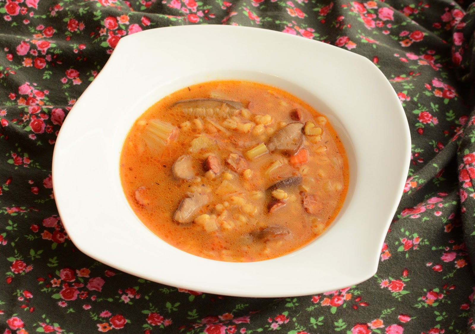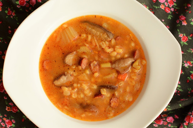 Ostatnio ciągle mi zimno. Zimno mi rano, zimno wieczorem.. nie ma znaczenia czy pali się w kominku, czy też siedzę otulona puchatym szlafrokiem. Mój organizm rozpoczął bunt i domaga się słońca. Co zrobić.. Pozostaje mi tylko wypijać hektolitry gorącej herbaty i gotować same rozgrzewające potrawy. Dziś zupa z pęczakiem i grzybami!