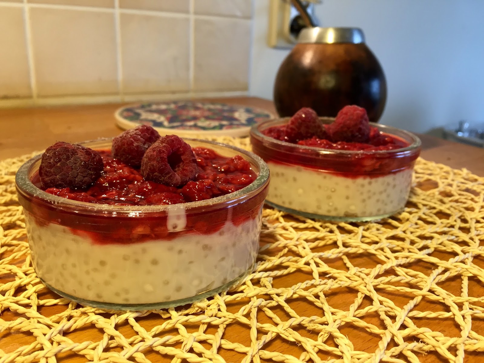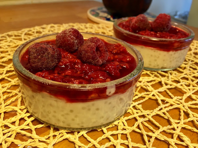 Lubię tapiokę w każdej postaci, więc desery z nią w roli głównej także co jakiś czas goszczą na moim stole. Dzisiaj zrobiłam pudding z tapioki na mleku kokosowym z malinami i odrobiną rozgrzewającego imbiru.
