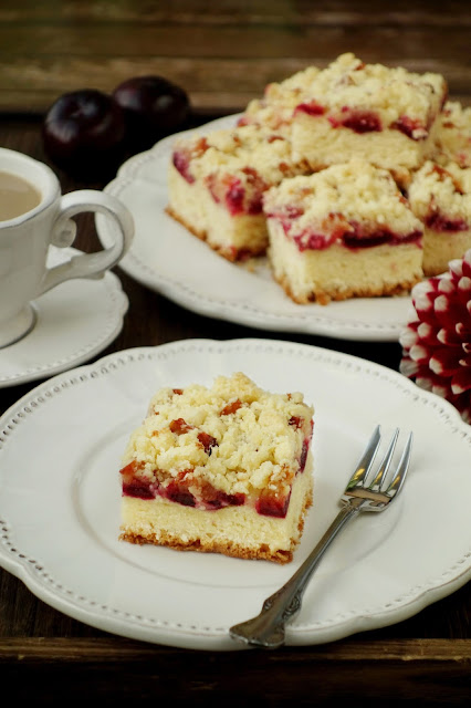 Ciasto drożdżowe ze śliwkami i słodką kruszonką. Bardzo puszyste i wilgotne. Upieczone na dużej blaszce z której otrzymamy dużą porcję ciasta dla całej rodziny. Prawdziwa klasyka. Sezon śliwkowy nie może odbyć się bez tego wypieku. Jak zawsze do ciasta drożdżowego użyłam suchych drożdży. Bardzo je lubię ze względu na szybkość i łatwość w użyciu. Jeszcze nie zdarzyło się tak aby jakieś ciasto nie wyszło przy ich użyciu. Nie martwiąc się o zaczyn, świeżość i przydatność do spożycia. Tym bardziej, że nigdy nie wiadomo na jakie ciasto przyjdzie nam ochota w danym dniu. Według poniższego przepisu należy wcześniej przygotować zaczyn używając suchych drożdży, więc jest to pierwszy taki przepis z jakim się spotkałam. Zawsze warto próbować nowych rzeczy. Polecam bardzo serdecznie.