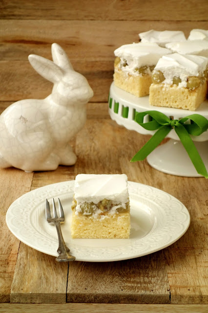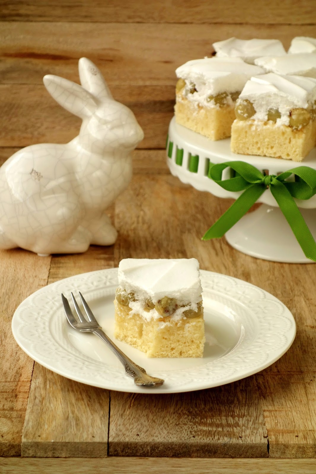 Lubię ciasta z kwaśnymi owocami, dlatego latem kupuję trochę więcej sezonowych owoców i zamrażam je, aby móc cieszyć się ich smakiem również jesienią i zimą. W zamrażarce znalazłam woreczek z tegorocznym agrestem a nic tak nie pasuje do kwaśnego agrestu, jak słodka beza. Padło, więc na pyszne waniliowe ciasto z dużą ilością agrestu i jeszcze większą ilością bezowej pianki. Polecam bardzo serdecznie.
