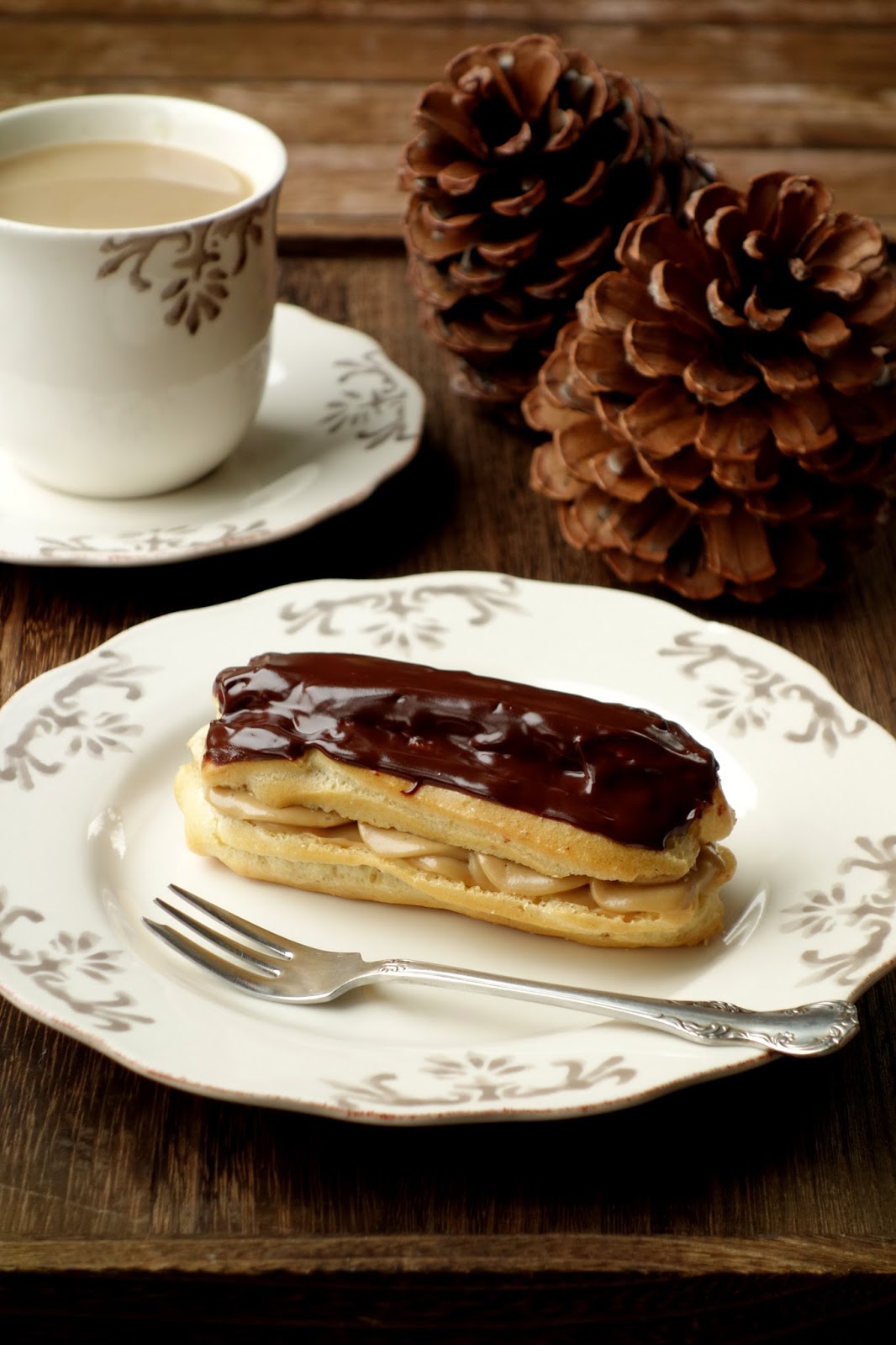 Klasyczne ciasto parzone z kawowym kremem budyniowym i błyszczącą polewą czekoladową. Bardzo proste do wykonania we własnym domu a smakują jak z najlepszej paryskiej cukierni. Oczywiście kawy dodajemy do kremu wedle własnego uznania i tego jaki smak chcemy uzyskać - bardzo mocny jak espresso czy delikatny jak cappuccino. Polecam