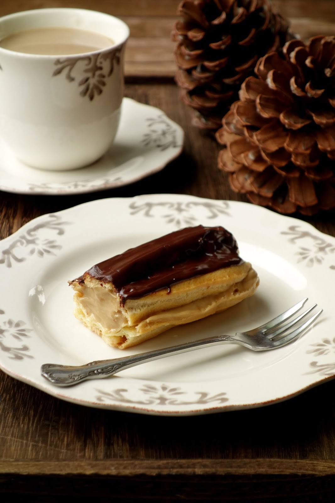 Klasyczne ciasto parzone z kawowym kremem budyniowym i błyszczącą polewą czekoladową. Bardzo proste do wykonania we własnym domu a smakują jak z najlepszej paryskiej cukierni. Oczywiście kawy dodajemy do kremu wedle własnego uznania i tego jaki smak chcemy uzyskać - bardzo mocny jak espresso czy delikatny jak cappuccino. Polecam