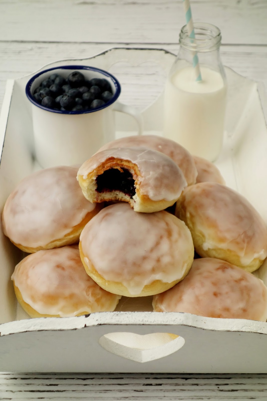 Kolejny przepis na drożdżowe jagodzianki, ale tym razem z lukrem. Kształtem przypominają pączki. Są równie delikatne i puszyste dzięki dużej ilości żółtek w cieście. Przepyszne i wypełnione po same brzegi nadzieniem jagodowym. Jak każde drożdżówki są łatwe do przygotowania ale zajmuje to dużo czasu. Drożdżówki można zamrozić po upieczeniu, ale nie mogą być polukrowane.