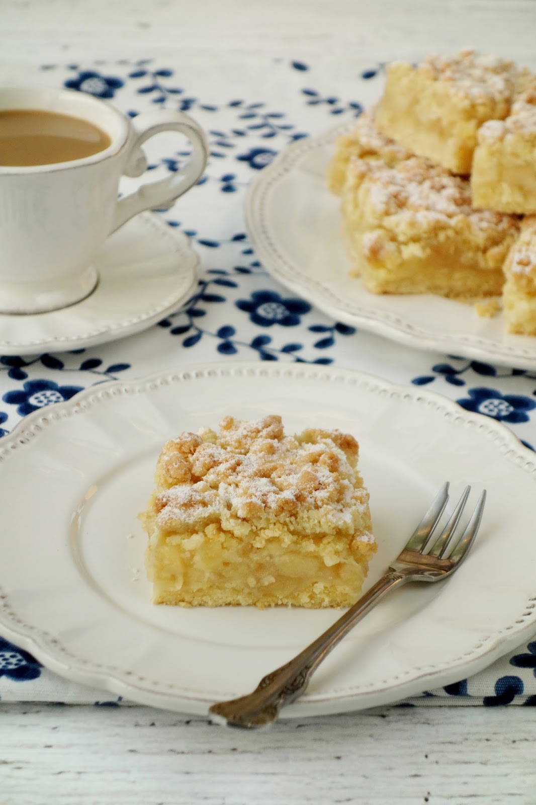 Przepyszne maślane ciasto, bardzo kruche, z dużą ilością prażonych jabłek. Nie ma nic lepszego niż taka szarlotka z widocznymi kawałkami jabłek. Jest bardzo szybka w przygotowaniu, pod warunkiem, że mamy pod ręką prażone jabłka zaprawione w słoiki. Jeżeli nie, to jej przygotowanie zajmie trochę więcej czasu. Szarlotka najlepiej smakuje jeszcze ciepła, podana z lodami waniliowymi. Najlepsza szarlotka jaką kiedykolwiek jadłam i od dzisiaj moja ulubiona. Polecam.