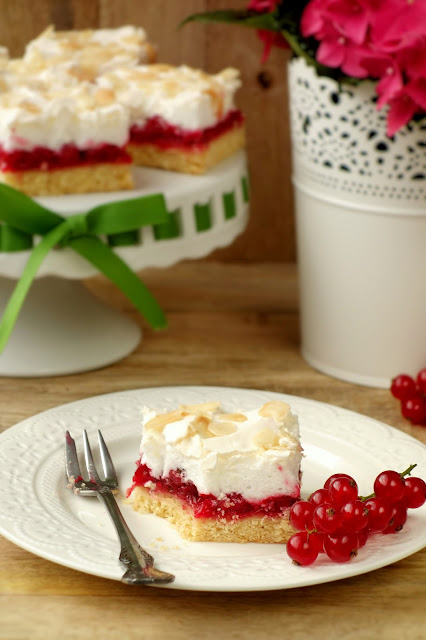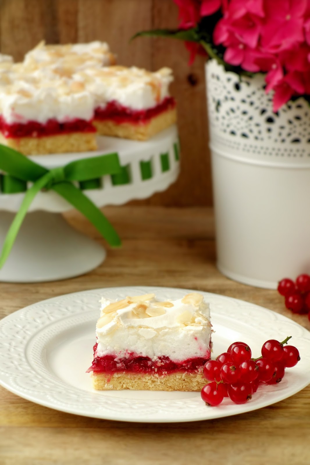 Mój tegoroczny faworyt wśród kruchych ciast. Cudowne połączenie kruchego ciasta, kwaśnych porzeczek i słodkiej bezy, która w środku jest wilgotna a na zewnątrz sucha i chrupiąca. Ciasto długo zachowuje kruchość i świeżość. Można przygotować je w różnych wersjach smakowych, wykorzystując przykładowo: rabarbar, maliny lub jagody. Na pewno każdemu zasmakuje. Polecam bardzo serdecznie.