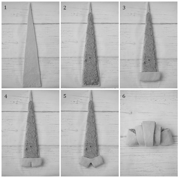 Kolejny przepis na poznańskie rogale z białą masą makową. Przez problemy z internetem przepis dopiero dzisiaj pojawił się na blogu. Mam nadzieję, że przyda się na przyszły rok a w tym roku można jeszcze z niego skorzystać piekąc te rogale na zbliżające się święta Bożego Narodzenia, jako dodatek do tradycyjnych makowców i ciast z makiem. Poniżej mała instrukcja obrazkowa jak zwijać rogale. Mam nadzieję, że ułatwi pracę tym, którzy jeszcze nie wiedzą jak zwijać rogale. Ja większość upieczonych rogali zamroziłam, dzięki czemu będę mogła dłużej się nimi nacieszyć. Polecam.