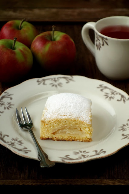 Najprostszy jabłecznik jaki kiedykolwiek jadłam. Bez jajek i z dodatkiem serka waniliowego. Ciasto ma bardzo fajną konsystencję. Podczas wyrabiania nie klei się do rąk, ani nie kruszy. Ciasta nie trzeba schładzać w lodówce co jest bardzo dużym ułatwieniem i można je przygotować w ekspresowym tempie. Dzięki jabłkom pokrojonym w połówki, jabłecznik po upieczeniu wygląda jak małe kwadratowe poduszki. Polecam.