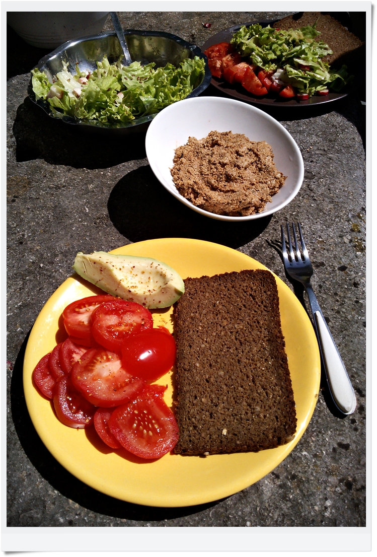 Pasta słonecznikowa + warzywa + chleb żytni na zakwasie.