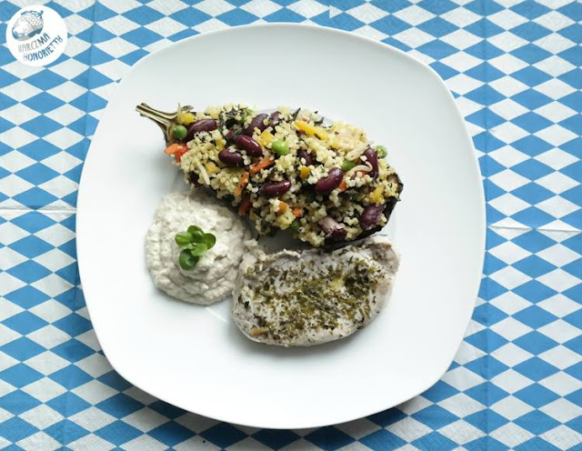 Przygotowanie:Umyte bakłażany kroimy na pół i nakłuwamy wnętrze widelcem, a następnie solimy. Teraz należy je zgrillować/podpiec w piekarniku, by miąższ stał się miękki,aby pod wpływem nacisku łyżki można było go "wklepać do środka".