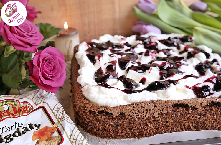 Obłędnie migdałowe ciasto kakaowe z pyszną waniliową bitą śmietaną i jagodową konfiturą. Czyż to nie idealna propozycja na Dzień Matki? Nieskomplikowane w wykonaniu, gwarantuje sukces cukierniczy i uśmiech na twarzy ukochanej Mamy.