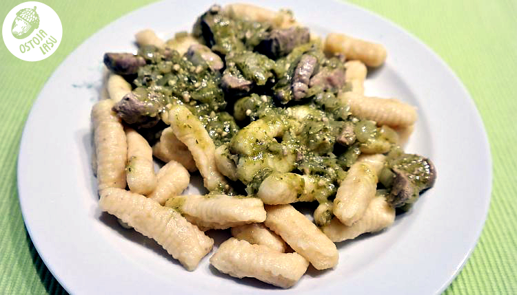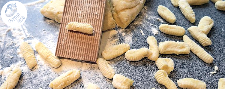 Przygotowanie:Ziemniaki, jak w przypadku dobrze nam znanych kopytek, należy ugotować wcześniej i najlepiej od razu rozgnieść praską. Dać im chwilę na odparowanie i przestygnięcie. Póki jeszcze są ciepłe dodajemy jajko i mąkę, oraz doprawiamy szczyptą soli. Wyrabiamy ciasto, aby było sprężyste i nie kleiło się do ręki. Oprószamy blat mąką. Dzielimy ciasto na mniejsze kawałki i kształtujemy je w wałki, które następnie kroimy na mniejsze. Tak jak przy kopytach. Tyle, że tutaj dopiero zaczyna się zabawa. Musimy przecież nadać naszym kluskom kształt gniotków. Są dwa na to sposoby. Albo używamy "specjalistycznego" urządzenia w postaci drewnianej deseczki z wyżłobieniami lub widelca. Jako, że posiadam ten niezwykle wyrafinowany przedmiot, to jego właśnie używałam do produkcji moich ziemniaczanych grudek. Trzeba po prostu sturlać kluskę po deseczce lub widelcu. Trochę wprawy i będą jak u włoskiej babci, czy pierwszorzędnej włoskiej restauracji. Jak widać po zdjęciach - moje nie są zbyt urodziwe. Ważne, że smaczne, czyż nie? Gotujemy w osolonej, wrzącej wodzie. Odcedzamy jak tylko wypłyną.
