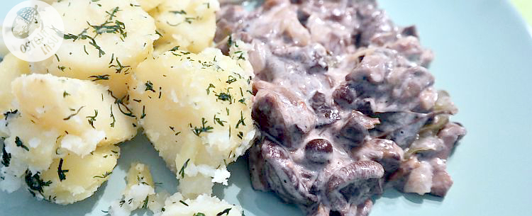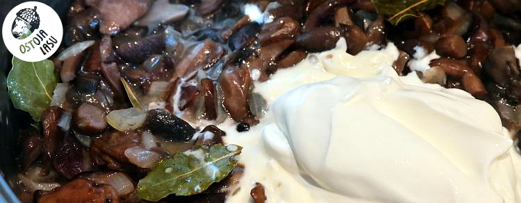Następnie dodaję śmietany. Ile? Wszystko zależy ile mam tych grzybów. Kwestia zabielenia. Znów przykrywam i od czasu, do czasu przemieszam, by się nie przypaliły.